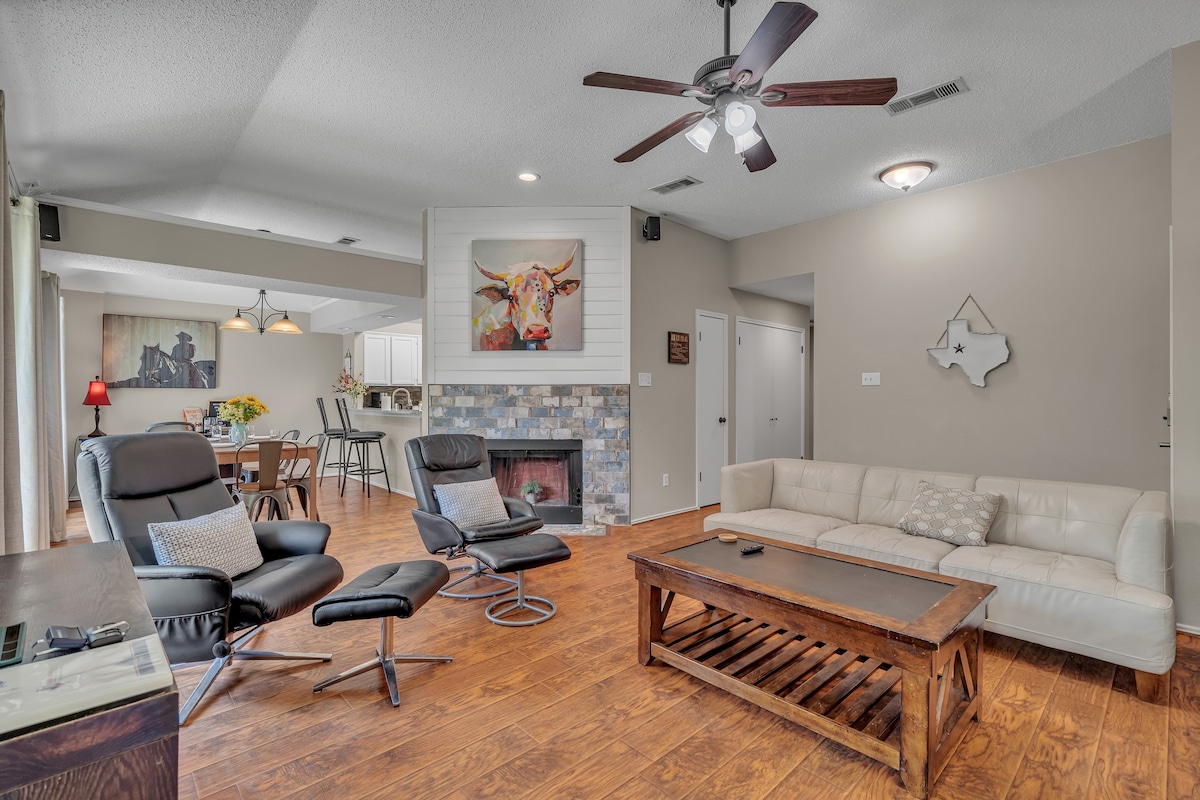 Welcome to our luxurious family-friendly Airbnb! Our home has all the amenities you need for a comfortable and enjoyable getaway with your loved ones. Watch movies and TV shows on the huge 85-inch screen, relax in the hot tub, or play in the grassy backyard. We even have a cozy reading nook for quiet moments. Located near Legacy West, The Star, RoughRiders Baseball, and many shopping malls, you'll never run out of things to do. Book your stay today and start planning the ultimate vacation!