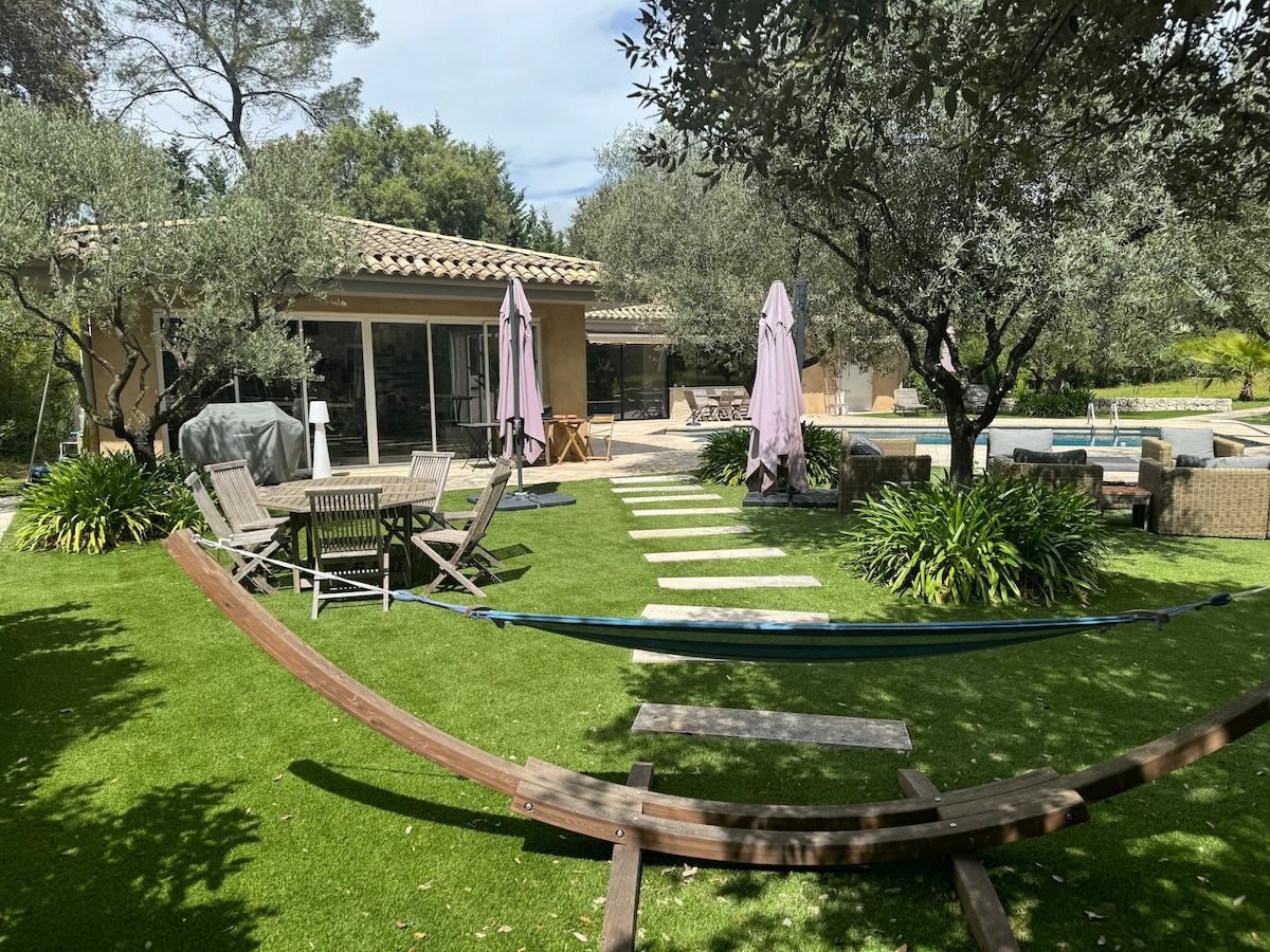 Selamat datang ke rumah keluarga kami yang terletak di bukit Grasse. Kami tinggal di sini sepanjang tahun dengan anak-anak kami, dalam semangat yang hangat dan sederhana, dan kami gembira untuk berkongsi dengan anda apartmen tetamu tingkat bawah, bebas sepenuhnya dan direka dengan teliti untuk keselesaan anda. Dari teres, anda akan menikmati pemandangan laut dan gunung yang luar biasa dan tidak terhalang. Dan untuk mereka yang gemar kekal aktif, gimnasium lengkap tersedia untuk kegunaan anda.