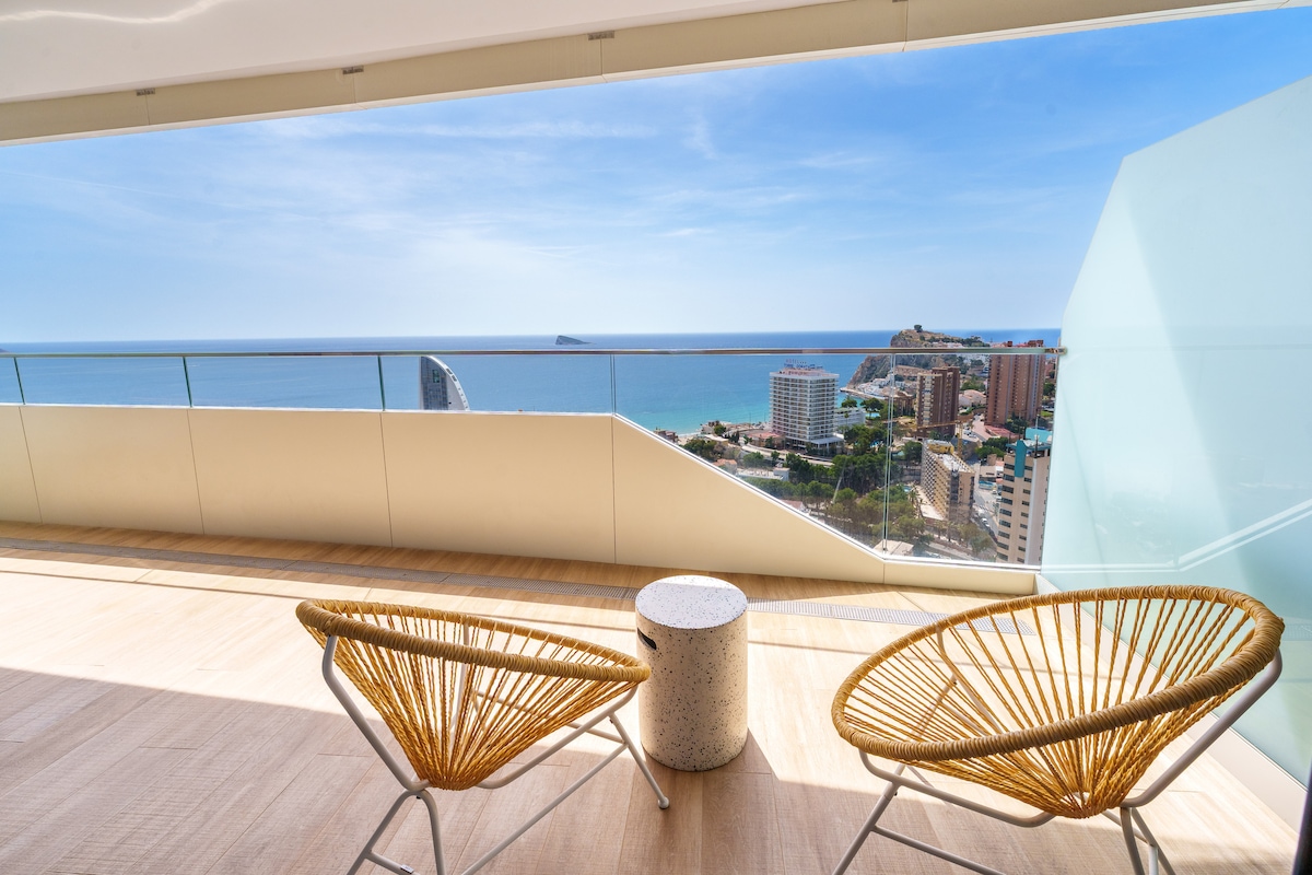 Apartmen tepi pantai seluas 120 m², di sudut tingkat 21, dengan pemandangan Mediterranean terbuka dari hampir setiap bilik. Penginapan yang jarang ditemui di Benidorm dari segi ruang, lokasi dan privasinya. Bangun pagi menghadap laut, nikmati sarapan dengan cahaya semula jadi dan akhiri hari dengan segelas wain semasa matahari terbenam. Baru diubah suai, cerah dan direka dengan teliti, dengan lampu LED yang boleh dilaraskan. Termasuk kolam renang umum dan tempat letak kereta persendirian.