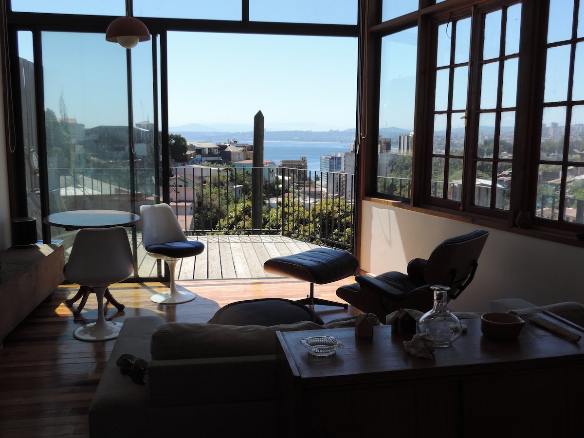 Apartment terletak di salah satu bukit tertua di pelabuhan Valparaiso. Gaya hangat dan klasik dengan sentuhan moden. Kejiranan Patrimonial del Cerro Cordillera berhampiran dengan restoran, sudut pandangan, muzium dan lif. Ia terletak di tingkat atas bangunan lama yang diubahsuai yang mempunyai pemandangan unik ke arah Lautan Pasifik, sesuai untuk menyaksikan matahari terbenam di teres dan berehat sambil melihat pergerakan bot di pelabuhan