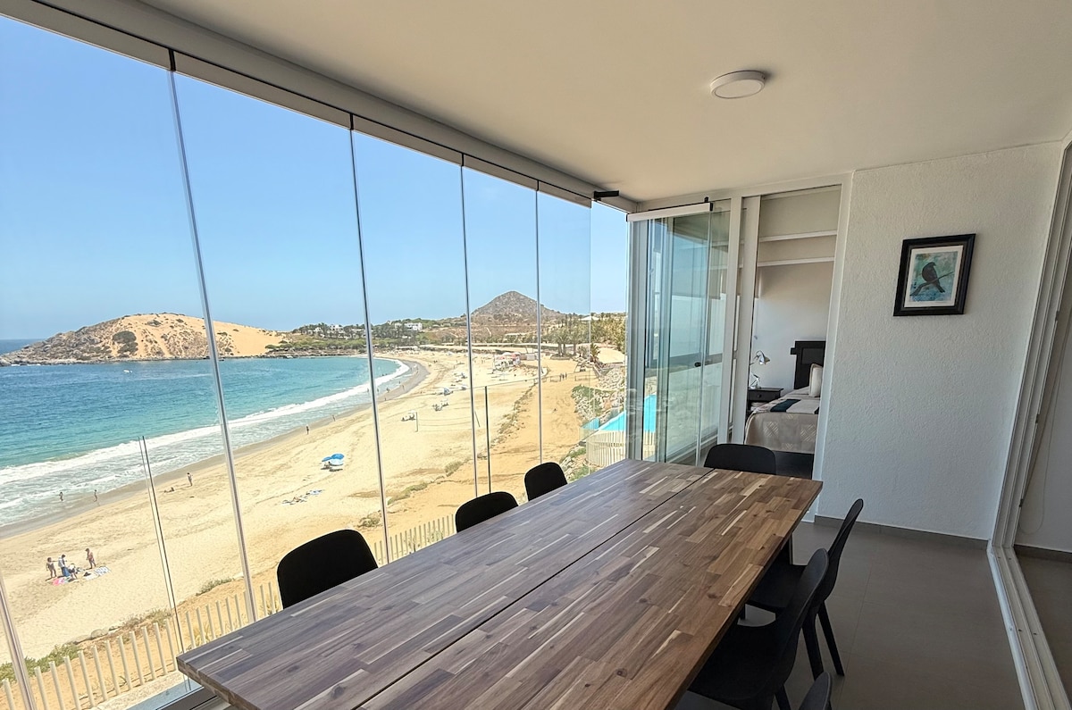 Pemandangan indah, lengkap, cerah dan baru diubahsuai. Sangat dekat dengan keturunan pantai dan bersebelahan dengan gudang dan tempat membeli-belah. Teres 15m2 yang luas dan pemandangan Playa Socos y Tongoy yang jelas, sesuai untuk berehat dan bersantai menonton laut sepanjang tahun. Terletak di tingkat 2, apartmen 2D dan 2B ini boleh menampung hingga 6 orang dengan selesa. Ia mempunyai akses terus ke kolam renang, pantai dan semua kemudahan kondominium Kami tidak sabar untuk melihat anda!