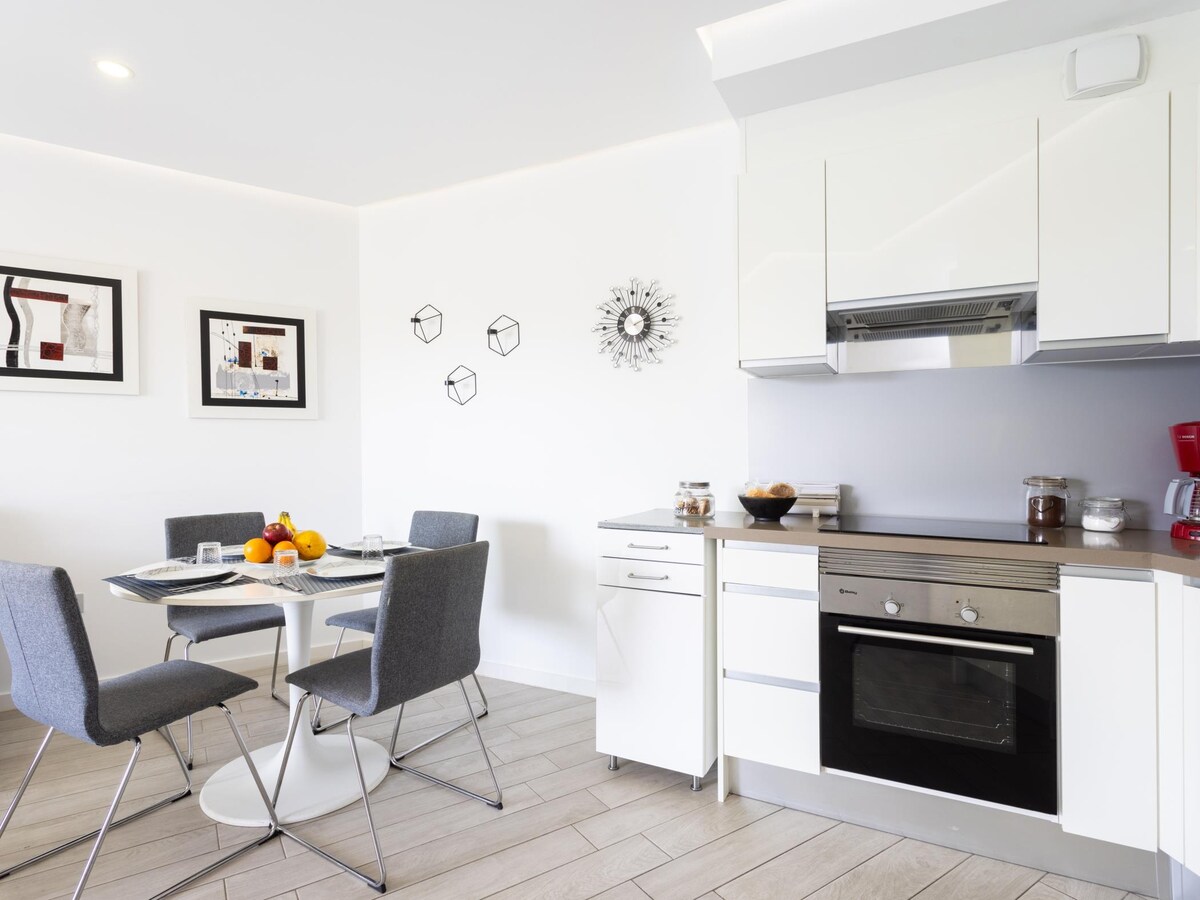 Apartmen yang cantik berhampiran laut dan teres besar.