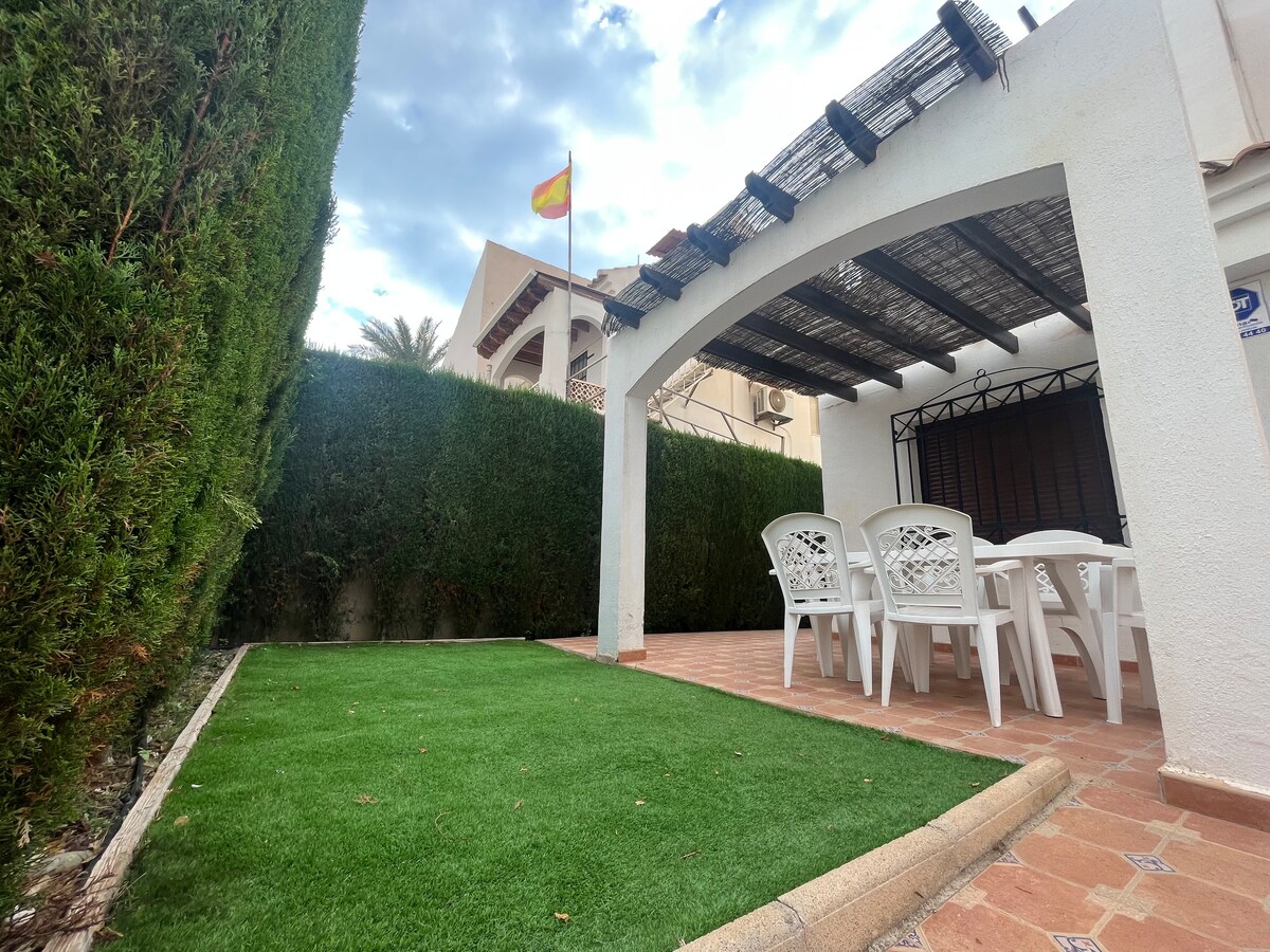 Apartmen satu bilik tidur, teres dalam pembangunan kediaman dengan kolam renang komuniti. Terletak berhampiran dengan pelabuhan, 5 minit berjalan kaki ke pusat perubatan, plaza de abastos, perhentian bas dan perhentian teksi dan berhampiran dengan pasar lambak mingguan. Rumah ini mempunyai bahan pantai seperti kerusi pantai, payung dan peti sejuk. Penginapan saya sesuai untuk pasangan dan keluarga. PENTING: Terdapat jadual fleksibel jika boleh Kami ada rel untuk katil dan katil bayi Tempat letak kereta mudah di hadapan apartmen