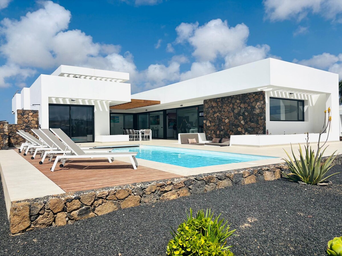 Vila unik yang boleh digunakan di tempat yang menakjubkan dikelilingi oleh gunung berapi dengan pemandangan yang menakjubkan ke laut, pulau-pulau Lanzarote, Lobos dan taman semula jadi bukit pasir putih. Nikmati matahari terbit dan terbenam yang berwarna-warni yang didahului dengan melihat bintang di kawasan yang tenang ini dalam landskap seperti bulan yang memukau. Vila ini adalah alam yang damai pada 10 minit memandu dari Corralejo dan Lajares serta pantai dan tempat meluncur yang paling popular. Nikmati reka bentuk dalaman yang cantik dan elegan, ia patio, taman & kolam renang.