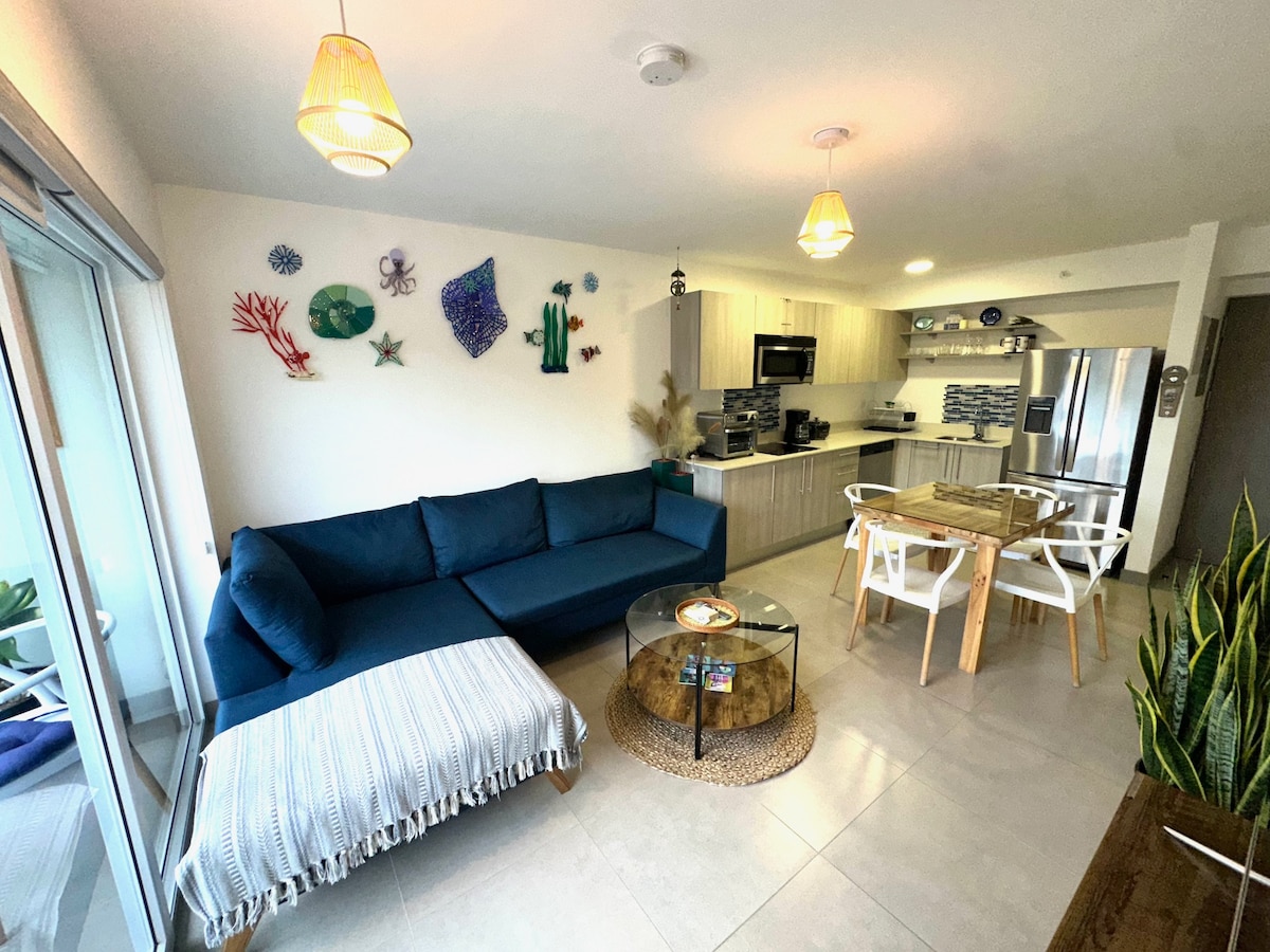 Apartmen yang diubahsuai dengan hiasan kontemporari, sesuai untuk kumpulan 4 orang, pemandangan laut dan hutan tropika yang menakjubkan. Akses terus dan persendirian ke Playa Blanca. Ia termasuk bilik tidur utama, dengan katil bersaiz king, dan katil sofa queen di ruang tamu. AC penuh, lengkap dengan semua peralatan, mesin basuh pinggan mangkuk, ketuhar gelombang mikro, ketuhar, peti sejuk, pembuat kopi, pengisar, pengisar. Ia juga termasuk pembersihan. Ia juga mempunyai WI-FI berkelajuan tinggi. Telefon dan TV kabel. Terletak di tingkat tiga tanpa akses kepada lif.