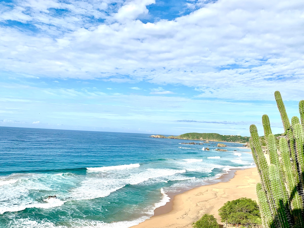 CASAPARAÍSO: tempat yang sesuai untuk menikmati penginapan anda di Mazunte dengan cara yang elegan dan pada masa yang sama berhubung dengan alam semula jadi, memanfaatkan pemandangan laut yang menakjubkan. Dalam hanya 1 minit berjalan kaki anda akan berada di dalam pasir pantai KECIL yang terkenal. Lokasi yang indah ini mempunyai semua kemudahan berhampiran (restoran dan kedai) dan sambungan Starlink yang canggih. Satu-satunya bunyi yang akan didengar ialah bunyi ombak: penginapan yang tidak dapat dilupakan...