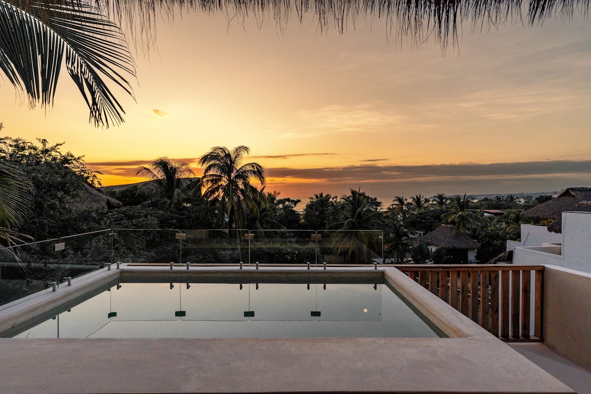 Baru-baru ini feat di Condé Nast Traveler "35 Airbnbs With Amazing Pools" @casahezbo adalah salah satu daripada empat reka bentuk unik ini, kemudahan premium, internet Starlink berkelajuan tinggi, Puerto Escondido terbaik di depan pintu anda. Terletak di La Punta, 5 minit berjalan kaki ke pantai, restoran, bar, & kedai kopi. Dua bilik tidur (king & queen), dua bilik mandi penuh, dapur penuh, ruang tamu, ruang makan, & kolam renang dalam reka bentuk dalaman dan luaran yang unik. Bilik tidur termasuk bidai, boleh ditutup sepenuhnya, termasuk AC & kipas siling.