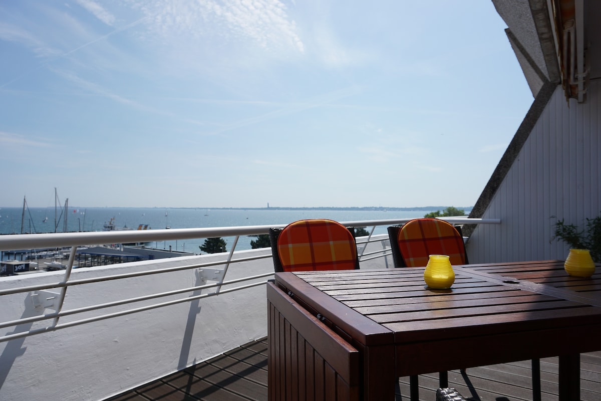Pemandangan pelabuhan panorama & pantai di luar pintu
