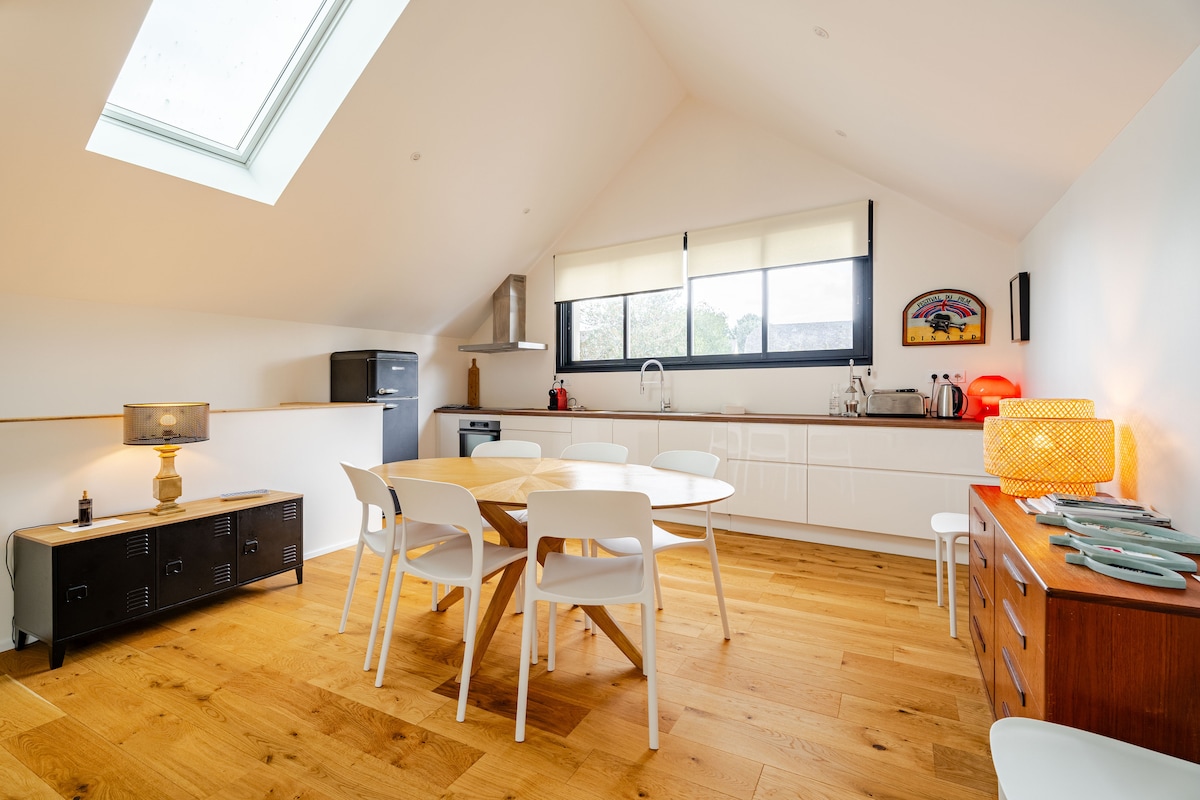 Di tengah-tengah Dinan, biarkan diri anda diangkut oleh keanggunan Rom Purba. Bersantai di suite mewah dengan balneo persendirian🛁. Nikmati keselesaan katil queen dengan peralatan tempat tidur 🛏️hotel, dapur yang lengkap, TV bersambung dengan Netflix, WiFi gentian dan teres intim. Tidak jauh dari Menara Jam dan Jerzual yang indah. Tempat letak kereta, restoran dan kedai berdekatan. Semuanya bersatu untuk percutian romantik yang tidak dapat dilupakan❤️.