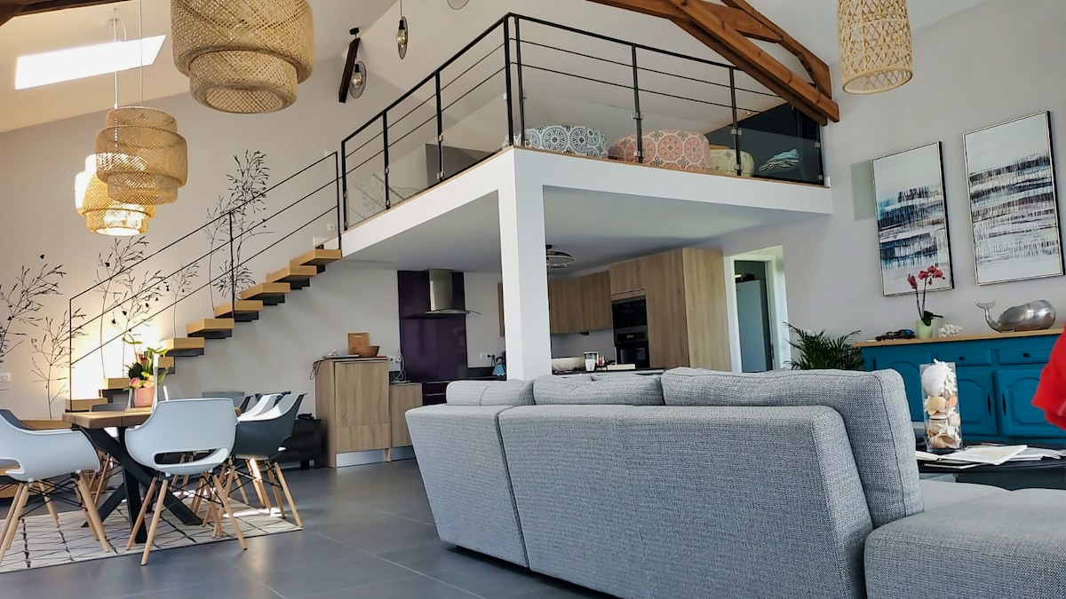 Permudahkan kehidupan anda di ruang tengah yang damai ini. Rumah yang diubahsuai dalam gaya Cycladic seperti kepompong yang cerah. Ruang tamu besar seluas 30 m2 dengan ruang tamu, dapur menghadap teres untuk makanan yang cerah. Dapur melengkapkan bilik ini untuk memanaskan beberapa hari hujan yang tidak pernah bertahan. Di tingkat atas, tangga kecil sepi 2 bilik tidur di tengah-tengah dan pancuran mandi bilik mandi. 1 katil bilik tidur utama 160x200 1 bilik kanak-kanak 2 katil 90x200. Ketenangan..