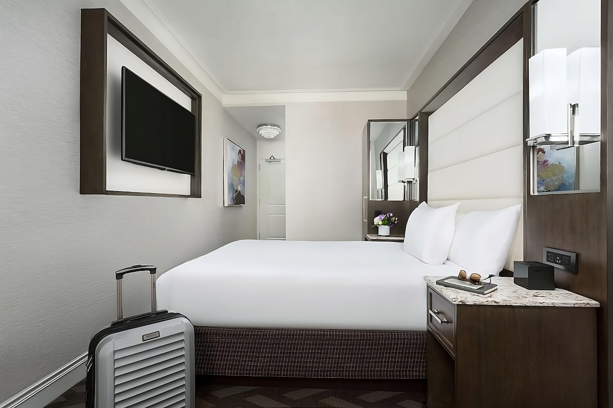 Cari tempat yang lembut untuk mendarat di bilik tetamu Superior Double Queen kami, yang terletak jauh dari kesibukan Pusat Bandar Boston. Dengan dua katil queen dan ruang untuk empat orang, kediaman terperinci Art Deco ini menjadi latar belakang yang sempurna untuk pengembaraan Boston anda yang berani. Terokai kemudahan dan ketenangan yang praktikal, seperti tingkap luas yang menghadap bandar, ruang kerja yang anggun, dan bilik mandi marmar dari lantai ke siling.
