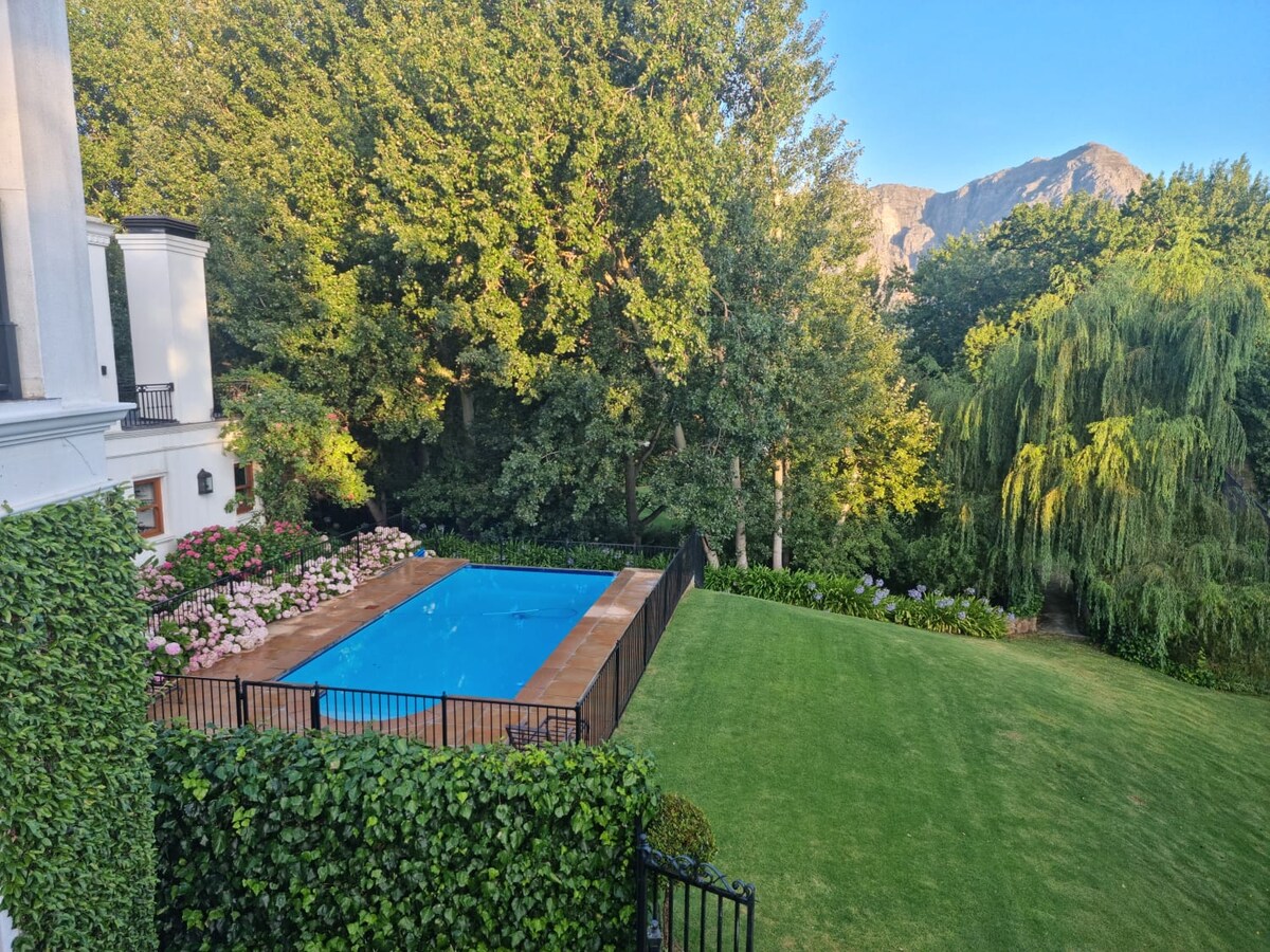 Sambut hari dengan sarapan sebelum gunung-ganang yang menakjubkan dan pemandangan desa dari balkoni yang cerah. Daripada siling rasuk kayu berkubah dan hiasan desa yang bergaya, hingga pendiangan bata, tempat persembunyian yang tenang ini bersinar dengan pesona yang indah. Terletak di atas 2 hektar taman yang indah, dengan pokok buah-buahan, ladang anggur & dikelilingi oleh gunung. Hirup segelas wain sejuk dan nikmati matahari terbenam yang indah dari balkoni besar dengan salah satu pemandangan terbaik! Sejukkan diri di kolam renang celup dan berehat di kawasan kolam yang teduh pokok atau pada hari-hari musim sejuk yang basah meringkuk bersebelahan dengan pendiangan dalaman. Penginapan berpagar, tetamu mempunyai akses sendiri dan bebas berkeliaran di penginapan ini. Kami suka memberikan ruang kepada tetamu di sana sendiri, namun sama ada saya sendiri atau ahli kakitangan sentiasa bersedia dan sedia membantu. Terletak di antara kawasan pergunungan yang menjulang tinggi dan ladang anggur yang kekal, penginapan ini terletak di Franschhoek, sebuah bandar yang terkenal dengan tempat makan bertaraf dunia, merasa wain, dan keindahan semula jadi. Lawati Muzium Peringatan Huguenot untuk mengetahui sejarah tempatan. Uber baru-baru ini tersedia di Franschhoek tetapi mempunyai kehadiran yang terhad (selepas 11 malam/12 tengah hari). Terdapat juga teksi tuk tuk yang tersedia, sila lihat maklumat tertutup untuk dihubungi. Sila ambil perhatian bahawa terdapat anjing penyelamat muda yang mesra yang berkeliaran dengan bebas di penginapan ini. Terletak di antara kawasan pergunungan yang menjulang tinggi dan ladang anggur yang kekal, penginapan ini terletak di Franschhoek, sebuah bandar yang terkenal dengan tempat makan bertaraf dunia, merasa wain, dan keindahan semula jadi.