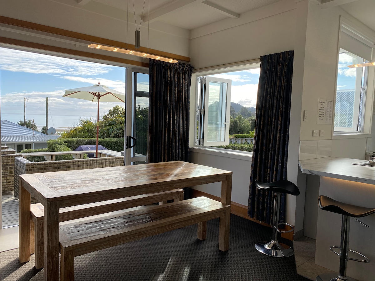 “Time Out” ialah percutian yang tenang dengan rumah kecil yang diilhamkan oleh nautika, taman dengan pagar piket putih dan dek besar. Rumah ini mempunyai bilik tidur yang selesa dan loteng tidur yang ringan dan lapang, menggabungkan pesona dan keselesaan. Saksikan pemandangan matahari terbenam yang menakjubkan sambil memegang minuman sejuk, dengar kicauan burung, dan tenangkan diri sepenuhnya. Hanya berjalan kaki sebentar ke pantai, kafe dan kedai, dengan laluan berjalan kaki dan berbasikal berhampiran—termasuk Abel Tasman National Park yang menakjubkan—ini benar-benar percutian pantai yang mengasyikkan.