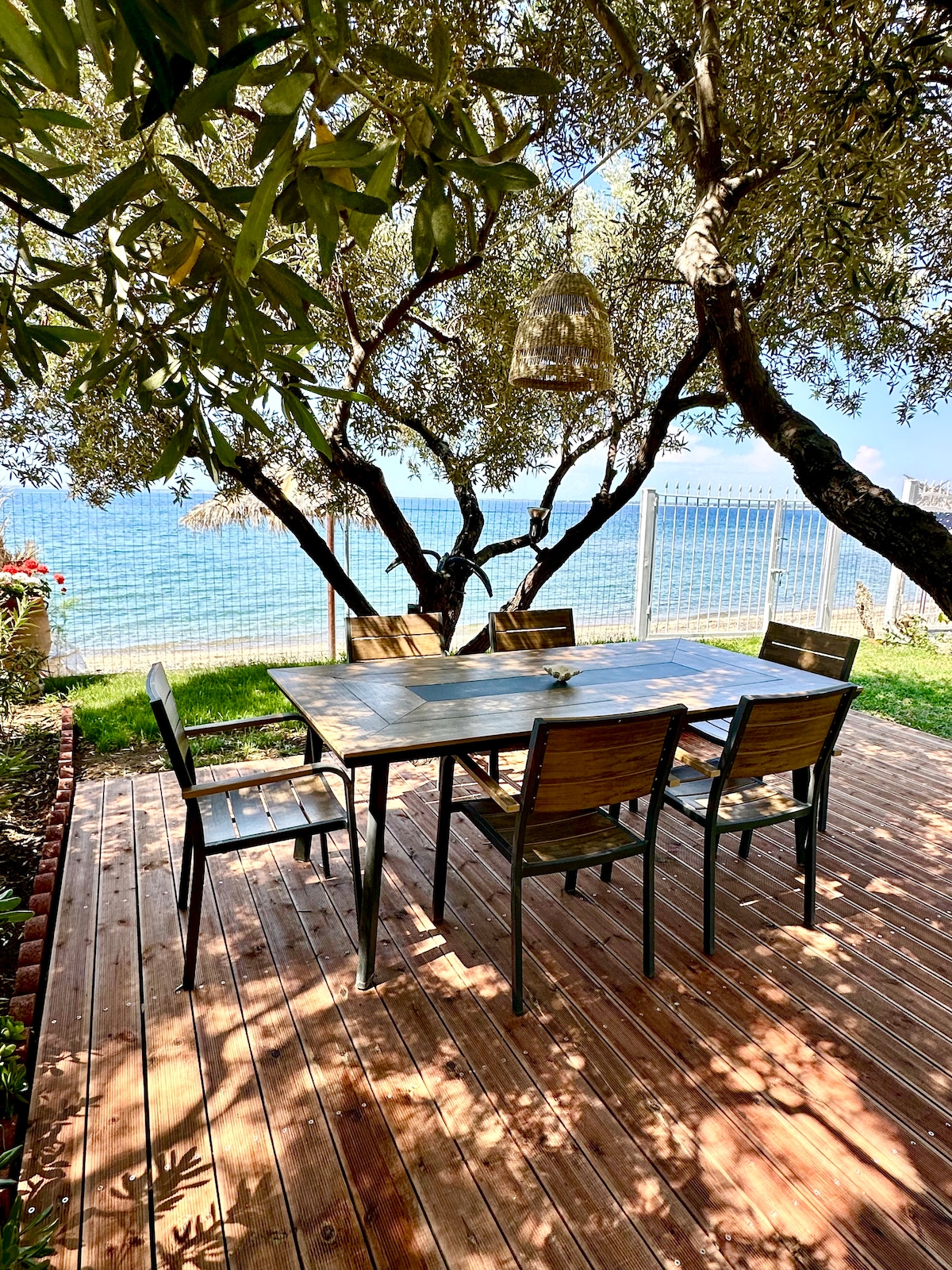 A beautiful, seaside, and fully equipped residence with a lovely garden offering an amazing view. This home is ideal for all types of guests, particularly families. Situated directly on the beachfront, you can enjoy the peaceful ambiance free from street noise and passing cars.