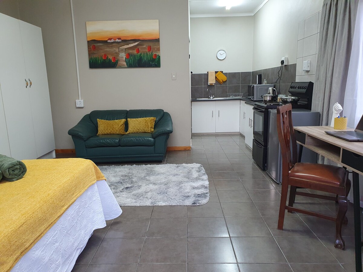 Kotej 1 bilik tidur yang menarik dan selesa. Dilengkapi dengan dapur kecil dengan ketuhar gelombang mikro dan peti sejuk dan bilik mandi ensuit dengan pancuran mandian. Taman yang tenang dan persendirian untuk berehat selepas bekerja keras atau mengembara. Ruang kerja khusus untuk mereka yang ingin mengejar projek kerja atau mel. Kami bertekad untuk menjadikan penginapan anda selesa. Terletak di tengah-tengah 2.6km (7min) dari lapangan terbang Polokwane. Tiga pusat membeli-belah utama dan Hospital kurang daripada 10 minit memandu.