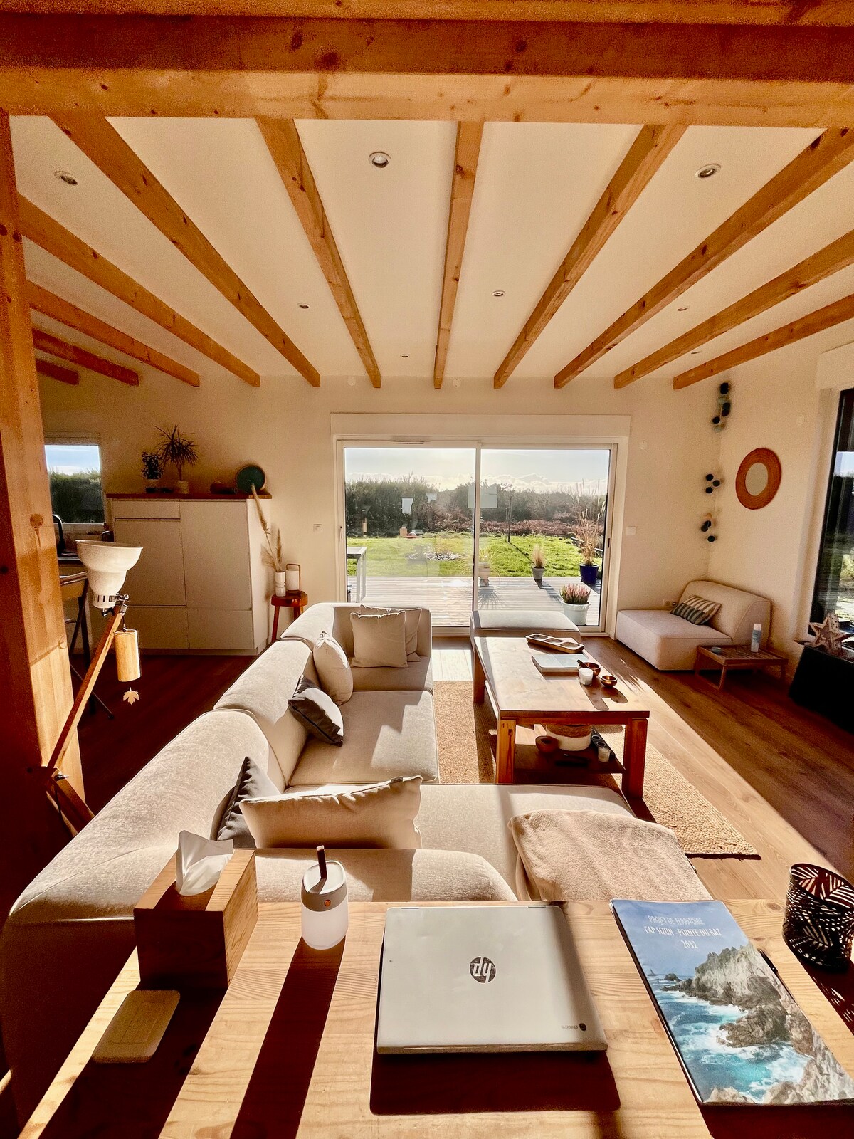 Habitat mesra iklim dan ekologi, rumah kayu kecil kami bersedia untuk mengalu-alukan anda dan membawa anda berehat dan menikmati mata. 35 meter persegi semua kayu hampir dilapisi dan dipanel kayu dengan thuya dan kayu cypress dari sawmill tempatan, ia diasingkan dengan cotton wadding. Semuanya telah difikirkan dan direka bentuk khusus untuk mewujudkan kepompong kecil yang selesa dan cerah. Pemandangan laut dari teres dan balkoni menjemput anda untuk meneroka teluk Audierne.