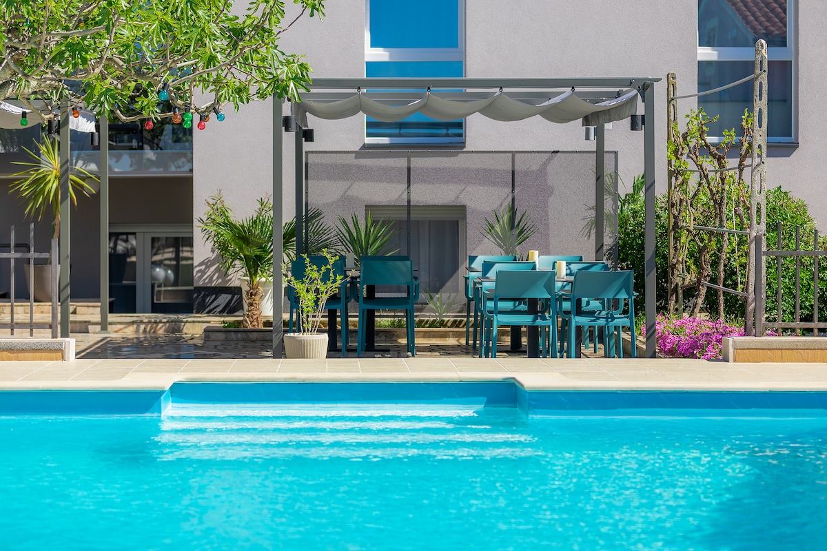 Villa LIVIA Apartmen KATTY kolam renang taman permainan pemanggang