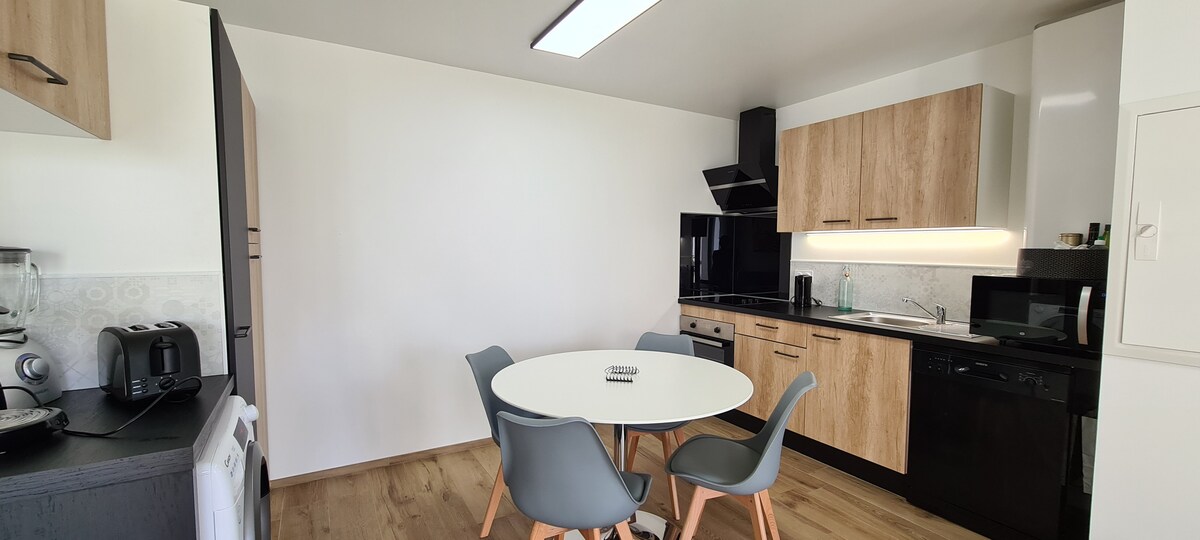 Semuanya berjalan kaki! Place du Marché, Place du Dauphin, Gare de Pornichet, Pantai ... Kita hidup dalam kebuntuan yang sangat damai, benar-benar tenang... Di tingkat bawah rumah kami, bebas, baru diubahsuai dan sangat lengkap (penyaman udara mudah alih, mesin basuh pinggan mangkuk, mesin basuh/pengering, ketuhar, ketuhar gelombang mikro, TV, Fiber, 2 basikal, katil 160, meja...). Cadar dan tuala katil tidak disediakan, tetapi pilihan tersedia atas permintaan. Anak perempuan kami yang berusia 17 tahun menawarkan dirinya untuk menjaga anak-anak anda.