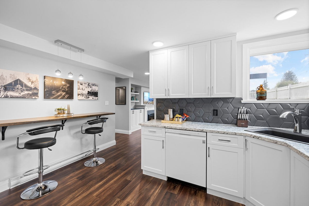 Suite 1 BDR yang selesa dan menawan dengan dapur kecil & 3 bilik mandi menawarkan wifi & tempat letak kenderaan percuma. Anda akan mendapati ia bersih dan diselenggara dengan baik dengan perhatian terhadap perincian. Kami hanya beberapa langkah dari Sungai Somass & Riverbend Cafe. Hanya beberapa minit dari Sproat Lake & 3km dari Clutesi Haven Marina Hike/basikal gunung trek tanpa henti dengan ciri-ciri menakjubkan seperti lubang di dinding. Kami dalam perjalanan hanya lebih sejam memandu ke Long Beach Tofino yang indah & pantai barat Pulau Vancouver