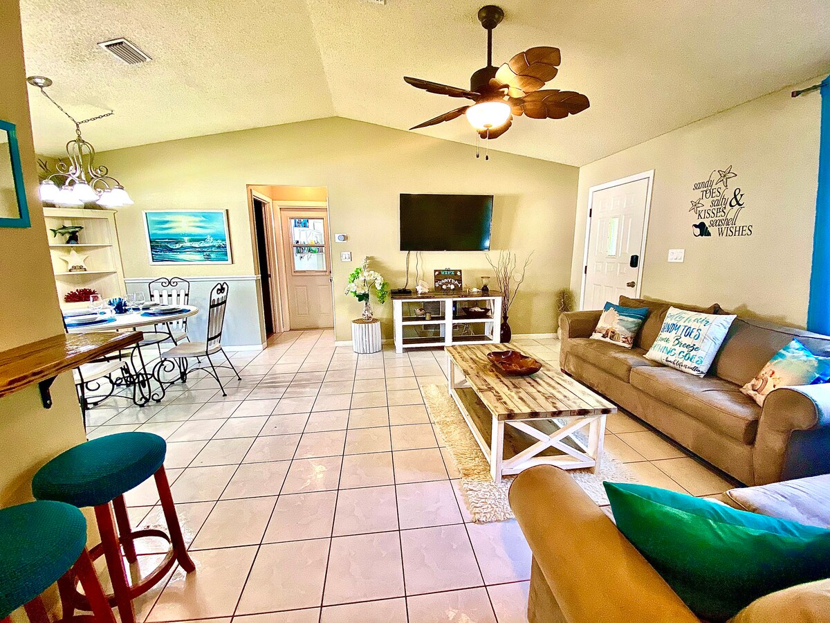 Bawa keluarga dan bot anda ke rumah percutian Port Charlotte kami yang selesa & tenang untuk penginapan yang menyeronokkan berhampiran dengan Charlotte Harbor. Rumah 3 bilik tidur, 2 bilik mandi kami boleh memuatkan hingga 8 tetamu. Kanak-kanak dan haiwan peliharaan boleh berlari dan bermain dengan selamat di halaman belakang kami yang berpagar. Memancing di dermaga persendirian kami atau ikat bot anda dan kemudian nikmati pelayaran indah ke pelabuhan. 10 minit memandu ke Charlotte Beach Park, 13 minit ke Sunseeker Resort, 18 minit ke Fisherman's Village. Tempah percutian mesra keluarga dan bot anda yang menyeronokkan sekarang!