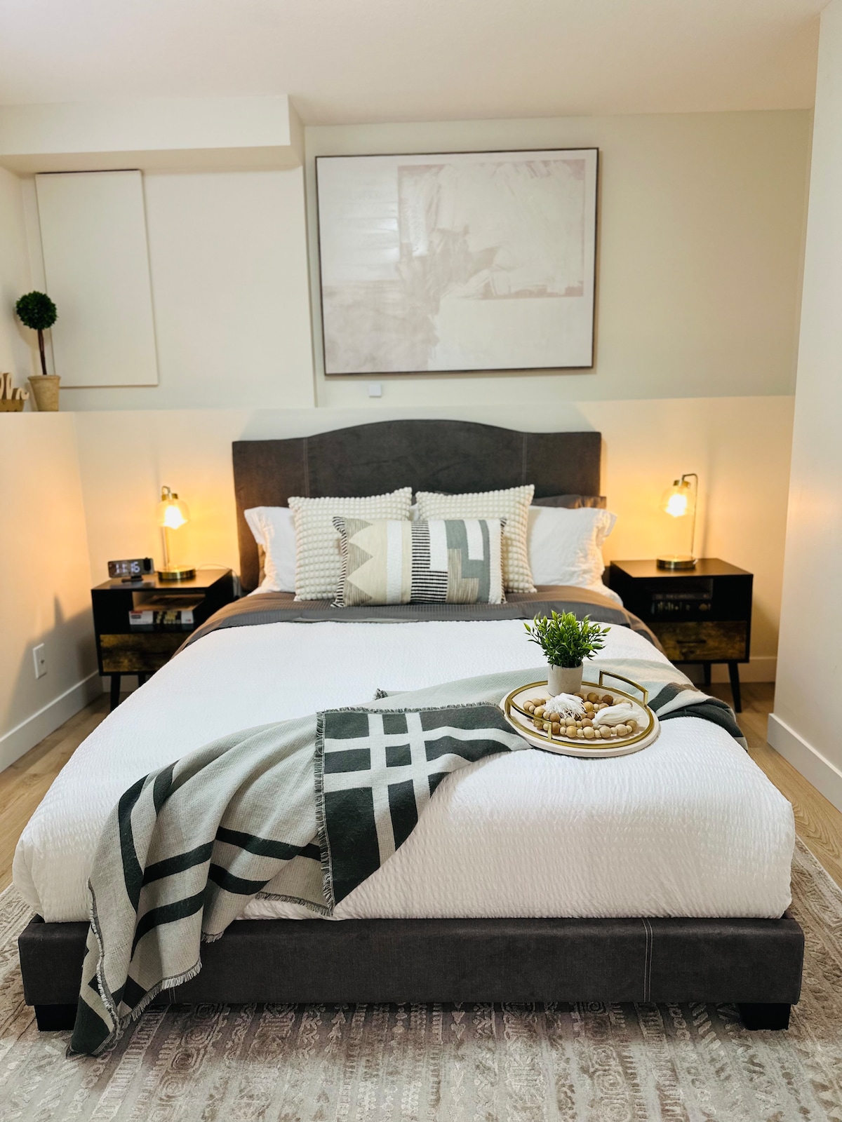 Welcome to our newly renovated self-contained suite, conveniently located close to the city center and attractions. With a private entrance, enjoy privacy and flexibility. The suite, situated on the ground level basement, offers ample natural light. Inside, find a cozy bedroom with a queen-sized bed and a studio double bed with curtains for privacy. The living room also has a sofa bed for additional sleeping space. Stay connected with free WIFI and parking in the safe neighborhood.