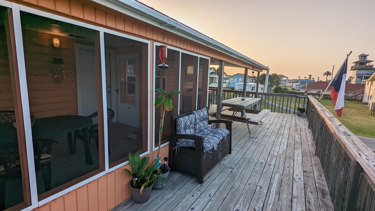 Berhampiran dengan King Fisher Beach di Matagorda Bay dan berhampiran tanjakan bot untuk melancarkan bot anda. Mesra haiwan peliharaan dengan pintu anjing dan halaman berpagar. Kolam renang dengan dek dan bilik mandi luar. Kawasan pembersihan ikan dan itik. Anda boleh menikmati angin laut dan pemandangan ICW dari dek rumah atau kawasan duduk berangin di bawah. Tempat letak kereta tambahan percuma, bot luar pantai tiada masalah, dan/atau RV 50 amp dan cangkuk air untuk tambahan $ 35 dengan sewaan rumah