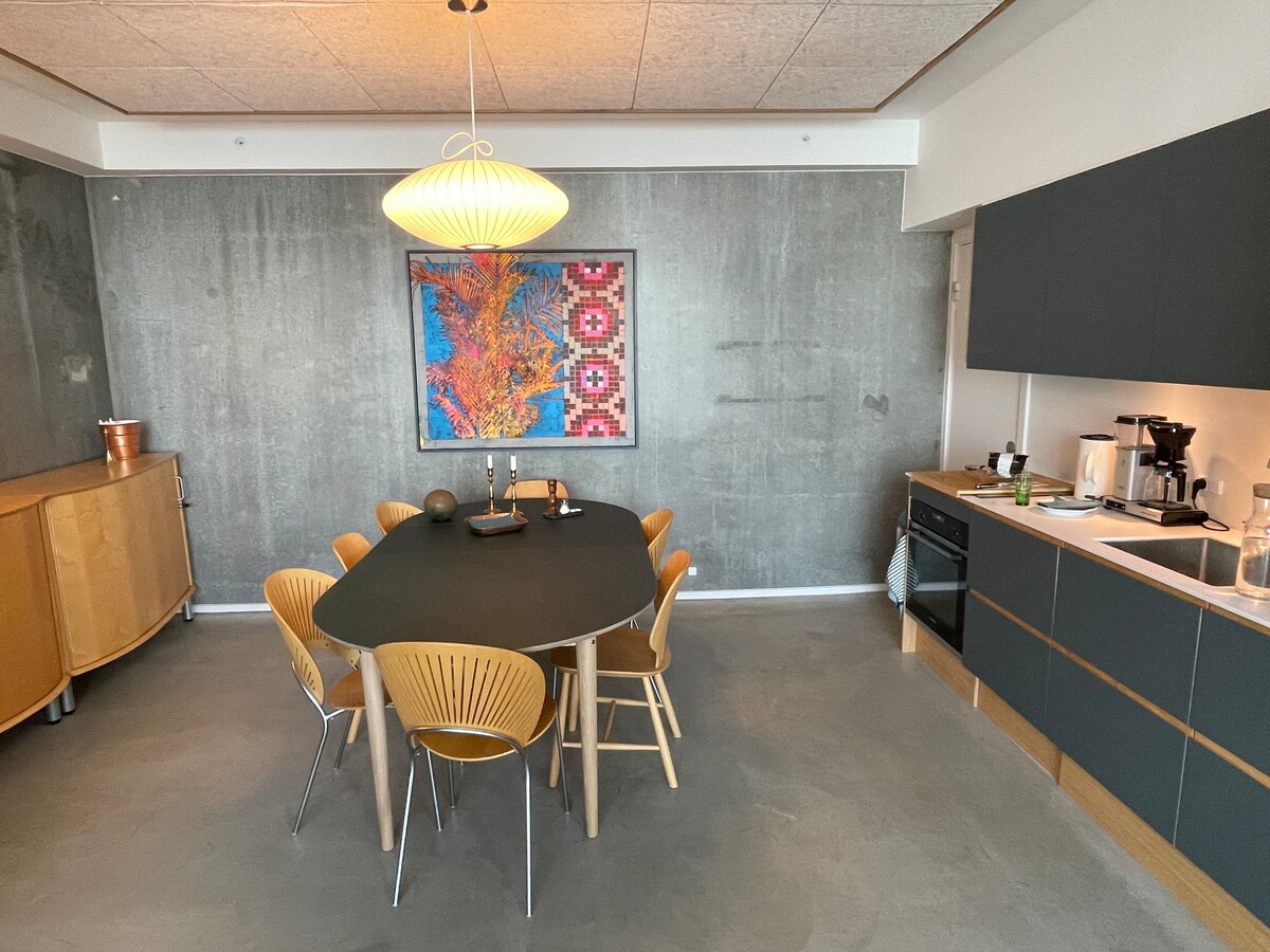Selamat datang ke Isbjerget! Pengalaman unik sempurna yang disediakan oleh apartmen ini adalah sesuatu yang anda akan ingati untuk masa yang lama. Dari katil double di Carpe Diem, anda dapat melihat terus ke Teluk Aarhus. Paling dekat seolah-olah kaki anda berada di dalam air. Apartmen berkeluasan 80 m2 di tingkat 6 dan dilengkapi dengan mesin basuh pinggan mangkuk, mesin basuh dan pengering, jadi tuala basah anda boleh dikeringkan selepas mandi pagi di laut. Di samping itu, bangunan itu sendiri merupakan karya seni. Saya harap anda akan selesa di apartmen yang cantik ini.