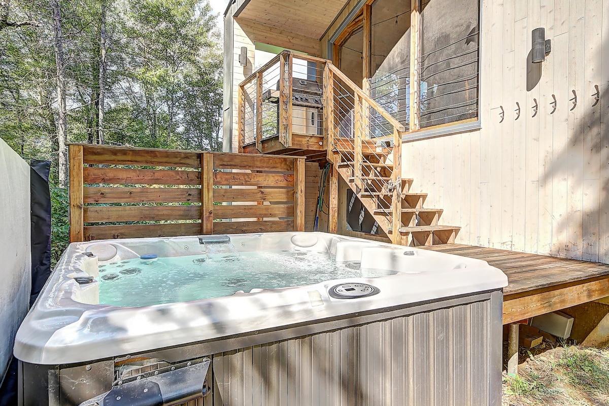 Anthony dengan pemandangan tab mandi air panas mesra haiwan peliharaan berhampiran Quebec