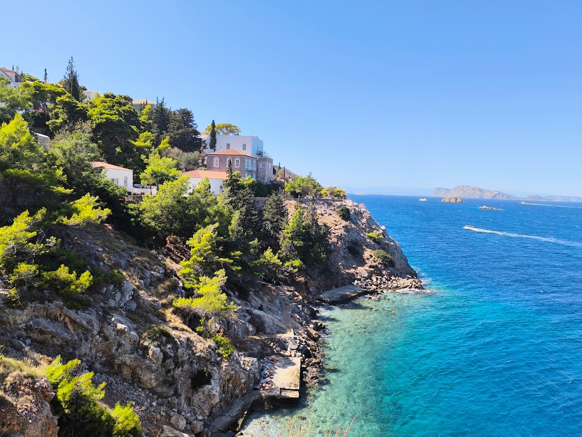 Ibu bapa kami membina rumah yang indah ini dalam seni bina tradisional Hydra. Rumah ini terletak di pelabuhan nelayan Kamini yang indah, lebih tenang dan damai berbanding pelabuhan Hydra yang meriah dan kosmopolitan. Ia berjarak 15 minit berjalan kaki dari pelabuhan pusat Hydra (di sepanjang jalan yang indah di sebelah laut) atau 3 minit dengan teksi air. Rumah ini hanya 90 langkah(biasanya lebih daripada 200) dari jalan tepi laut Kamini tetapi pemandangan yang menakjubkan dari teres menjadikannya berbaloi.