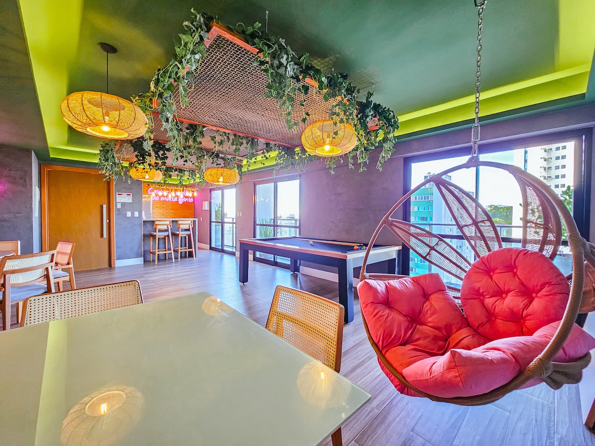 Kolam renangnya menakjubkan! Apartmen ini terletak beberapa meter dari pantai paling terkenal di Salvador, Porto da Barra! 700 meter dari Farol da Barra! (5 minit berjalan kaki) 10 minit ke Pelourinho! Berdekatan dengan segala-galanya! Kami meletakkan satu lagi TV besar di dalam bilik! Kami mempunyai kedai roti, pasar, farmasi dan restoran yang sangat dekat! Flat kami sangat tersusun rapi, dengan penyaman udara, 1 katil double, 2 tilam single dan 1 sofa! Cadar tilam dan tuala disediakan! Kami ada perkakas dapur