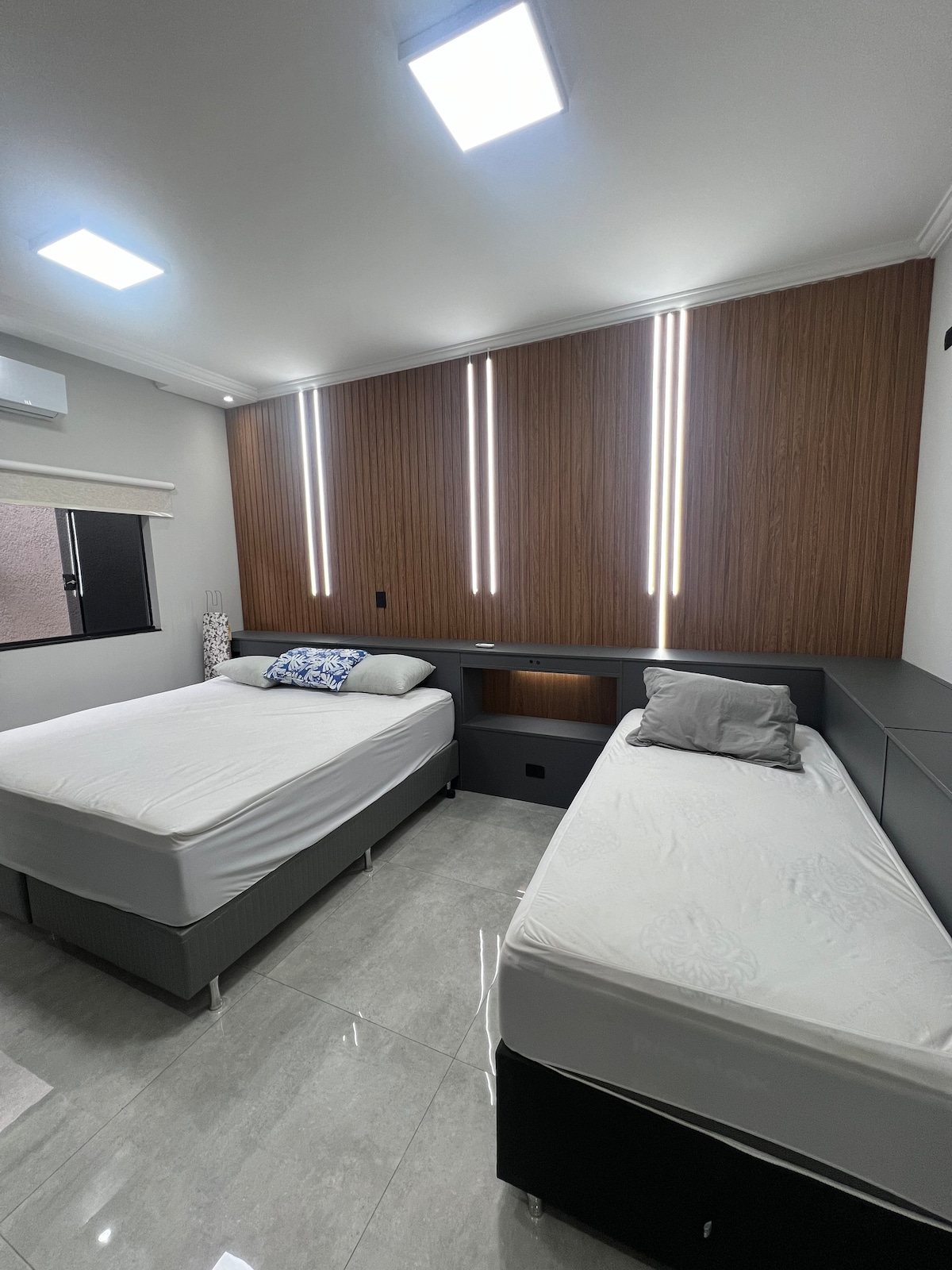 Sobrado em Condomínio Fechado, selamat, diubahsuai. 1• Tingkat: 2 bilik tidur dengan penyaman udara (katil queen + katil single (dua tingkat) + tilam tambahan (lantai) , ruang tamu dan bilik mandi. Kami tidak menawarkan tuala dan barangan peribadi. Semua tilam dan bantal mempunyai jubah. 2• tingkat: dapur penuh (semua peralatan asas), ruang makan, balkoni besar dengan barbeku dan bilik mandi. *Kami mempunyai 42/20 ampere di ruang letak kereta, untuk pengecasan 🚗 elektrik.