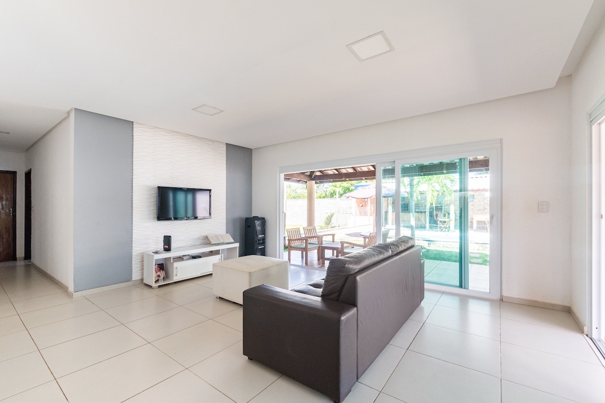 # ACARA TIDAK DIBENARKAN # Rumah ini terletak di Condomínio dos Corais (walaupun Vila Galé Resort), kira-kira 250m dari pantai di mana gerai-gerai utama (Carlinhos dan Prefeitinho) terletak, 5 minit berjalan kaki dari pantai, yang tenang dan membentuk ikan semula jadi pada air surut Rumah ini mempunyai infrastruktur yang lengkap, dengan penghawa dingin berpecah di semua 5 bilik tidur. Bersantai di kolam renang besar dengan dek basah dan nikmati ruang gourmet, dilengkapi dengan barbeku dan bir profesional
