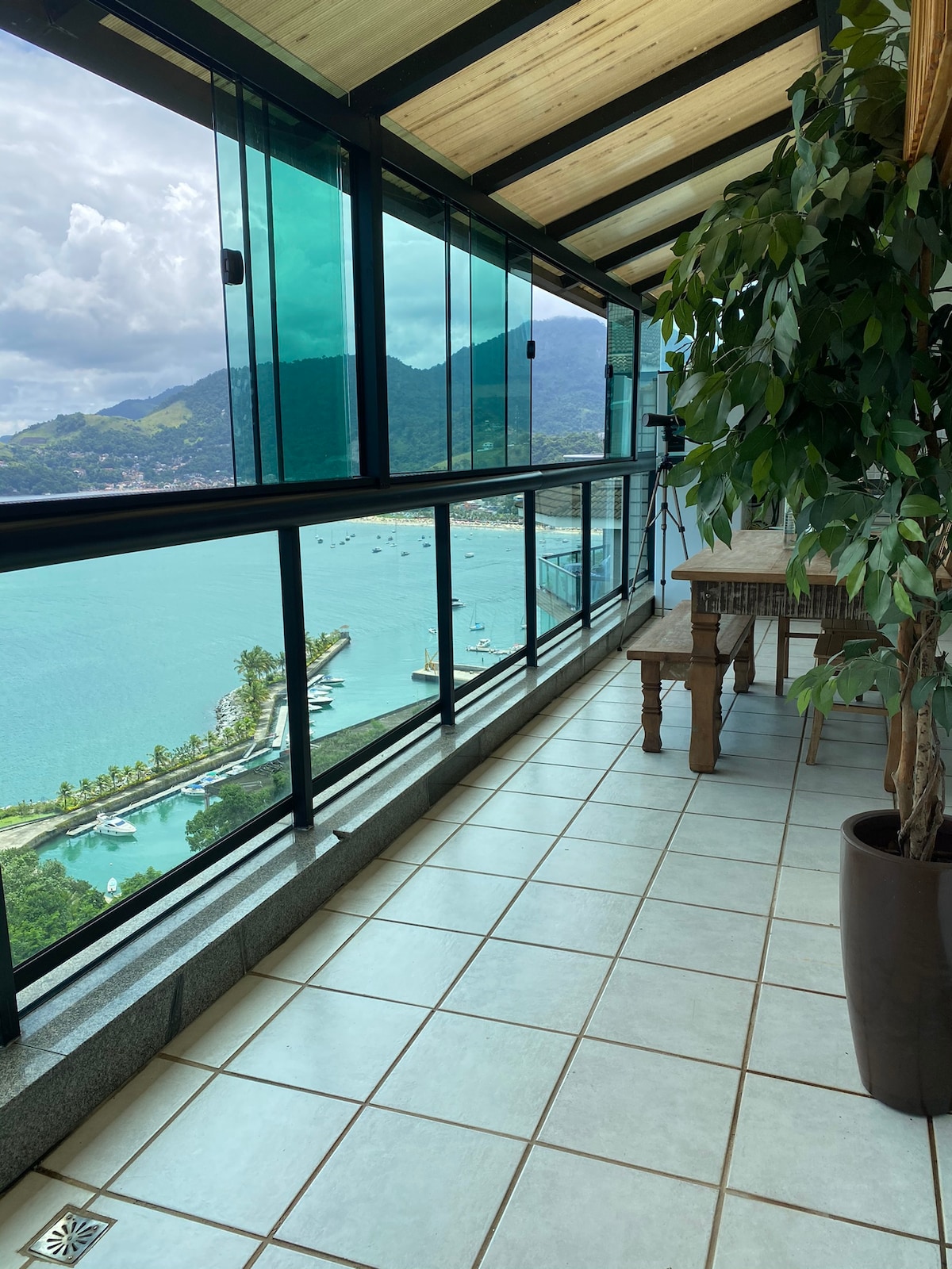 Percutian kaca dan kayu 150 ela dari pantai. Loteng dengan suasana yang luas, dengan pemandangan hutan dan teluk Abraão, sesuai untuk pasangan dan sehingga 3 orang. Terletak di kejiranan yang tenang, 5 minit dari restoran dan bar pantai, dan 15 minit berjalan kaki ke langkah yang tenang dari pusat bandar. Dengan air aroma dan ruang luaran berbumbung, sesuai untuk memanfaatkan pada hari hujan. Dengan kipas yang kuat, dapur yang dilengkapi dengan keperluan dan kelambu di atas katil.