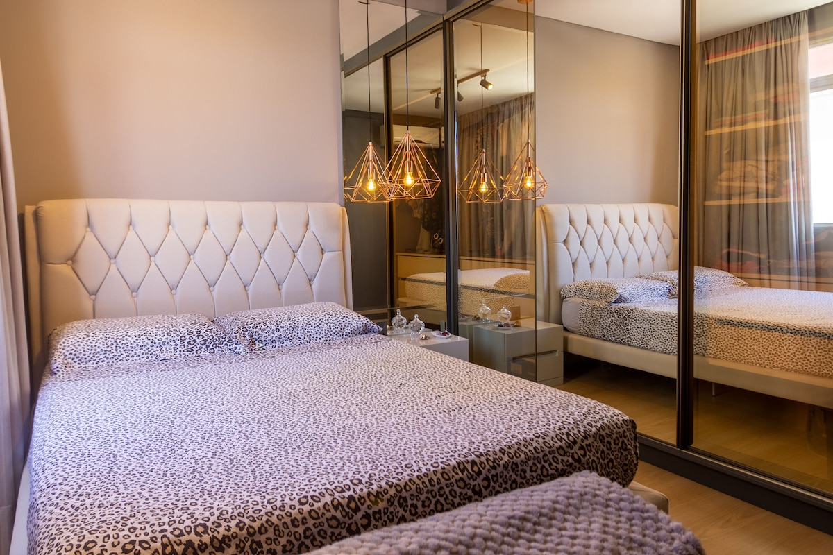 Apartmen 🏠 ini menempatkan sehingga 3 orang dewasa dengan keselesaan yang hebat dan tenaga yang selesa yang membuat anda berasa selesa seperti di rumah dari hari pertama. 📶 Wi-Fi pantas (sesuai untuk pejabat rumah), 🌬️ pendingin hawa dan 📺 TV dengan Netflix dan Prime Video (akses dengan akaun peribadi anda). 🚗 1 ruang garaj tertutup dan bertanda. 🏢 Kondominium dengan gimnasium, dobi (berbayar) dan kolam renang di teres dengan pemandangan Linda