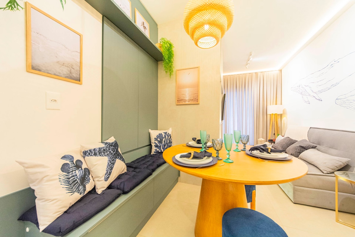 Studio Baru! Reka bentuk seni bina dengan reka bentuk yang selesa dan berfungsi. Internet yang stabil dan berkuasa, sesuai untuk bekerja dan berseronok di tempat yang sama, 400m dari laut. Perabot tersuai, peralatan baharu, direka untuk menjimatkan dan praktikal, penyaman udara, air panas di semua paip, mesin basuh-pengering, TV 43 inci, mesin pembancuh kopi Dolce Gusto, ClaroTV, Disney dan Netflix. Bangunan keluarga, tenang, dengan kolam renang dan garaj. Bersantai atau bekerja di penginapan sempurna anda di Florianopolis.