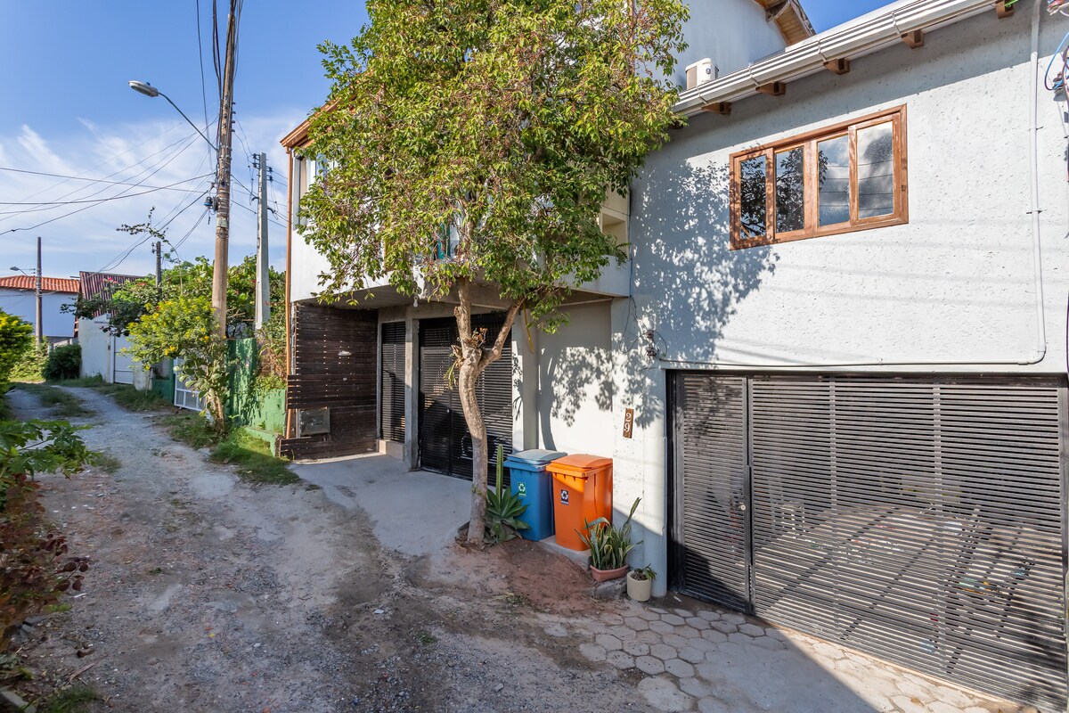 Studio Cantik 50 meter dari pantai Campeche, dengan penyaman udara panas dan sejuk, cerah besar dan mempunyai pengudaraan yang baik! Sesuai untuk mereka yang suka menyaksikan matahari terbit di laut! Di sini anda boleh berjalan-jalan di pantai walaupun sebelum sarapan Memuatkan 4 orang , 2 di katil kelamin dan 2 di mezanin di atas tilam bujang Studio ini berkembar dengan rumah saya tetapi mempunyai pintu masuk bebas, ia tidak mempunyai garaj tetapi ia sangat tenang untuk meletak kereta di jalan. Ia terletak di kawasan Lomba do Soap.