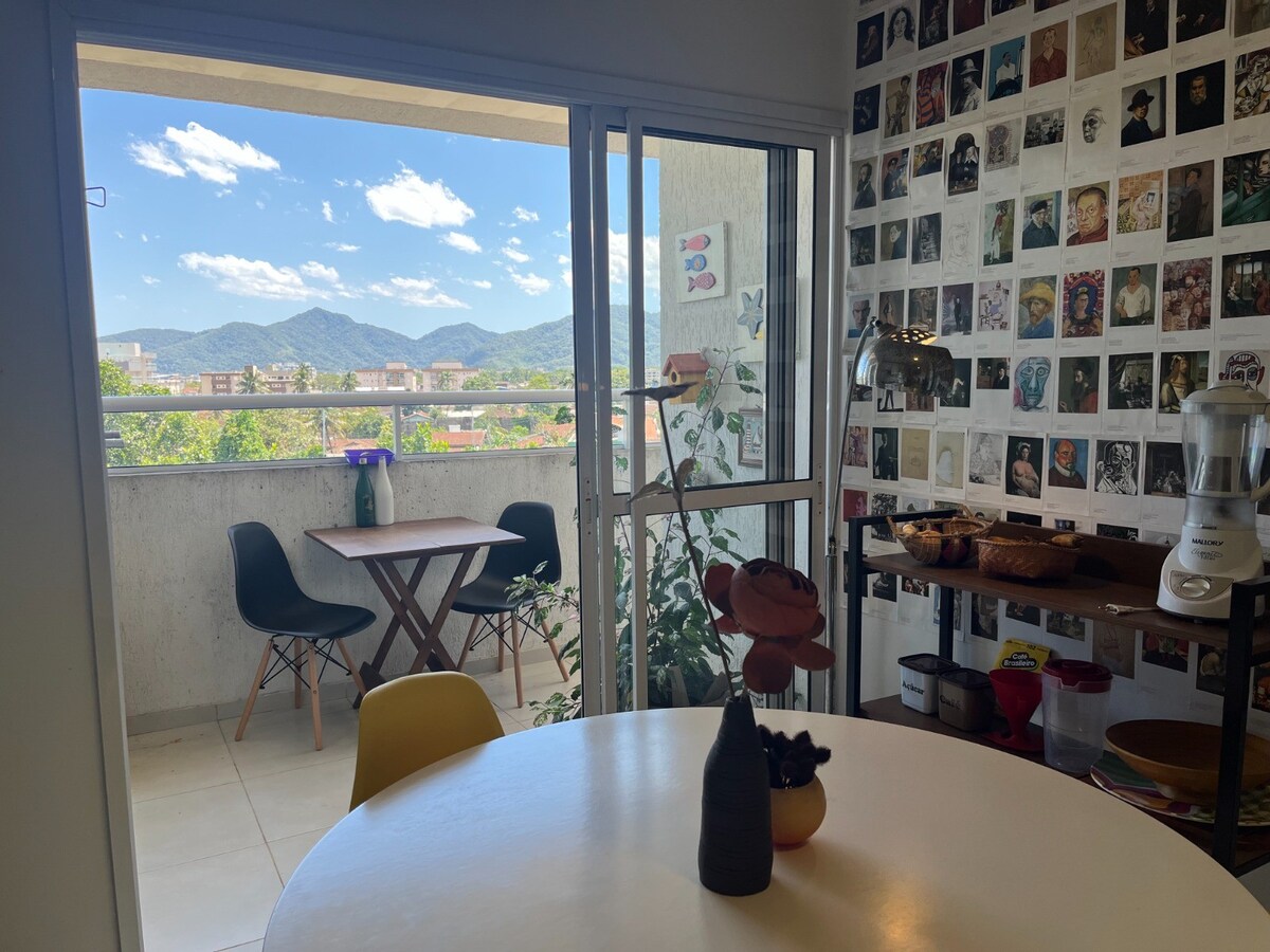 Studio baru dengan reka bentuk yang ditandatangani oleh arkitek, sangat cantik dan selesa. Ia 400m dari Orla da Praia do Perequê Açú. Kami mempunyai: TV pintar, wifi gentian optik, ruang sendiri untuk bekerja, dapur yang lengkap, barbeku di balkoni dan pemandangan Hutan Atlantik yang menakjubkan. Di dalam bangunan kami mempunyai kolam renang, ketuhar pizza, pancuran mandi dan garaj dengan pintu pagar elektronik. Lokasinya sangat baik, berhampiran Centro e Rua Turística, selain Lebuhraya.