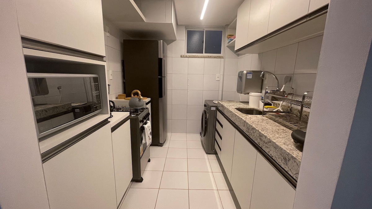 Lengkapkan apartmen 45m2 di kondominium dengan kawasan riadah yang lengkap, keselamatan dan keselesaan, yang direka untuk penginapan jangka pendek dan panjang. Sesuai untuk pasangan, orang yang mengembara dalam kumpulan untuk bercuti/bekerja atau keluarga dengan kanak-kanak. Struktur untuk hingga 4 orang. Kami berada 1km dari Beach Park dengan pemandangan laut dan rantau yang istimewa. Farmasi, kedai roti, pasar, restoran hanya selangkah lagi. Nilai terbaik untuk wang di rantau ini bagi mereka yang ingin berada di lokasi yang baik dengan keselesaan dan kualiti.