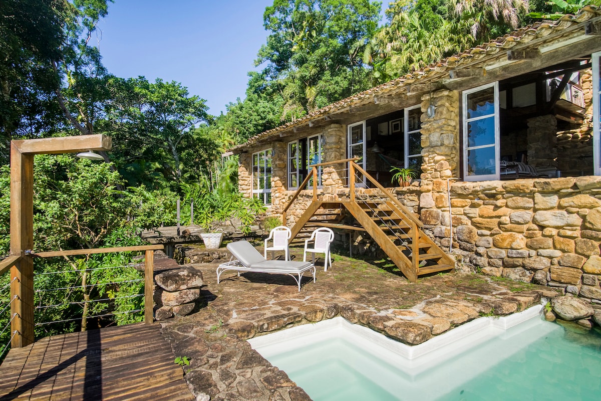 Rumah ini disepadukan di dalam hutan, di atas pokok, menghadap laut, di dalam kondominium, di atas bukit di sudut kanan Praia do Félix, di bahagian yang paling indah dan terpelihara di Perbandaran Ubatuba. Di sini anda bangun dengan bunyi hutan Atlantik dan ombak. Terdapat 3 suite, buaian rajut, sofa, TV dengan DVD, internet pantas dan barbeku. Ini adalah rumah yang sempurna bagi mereka yang ingin menikmati ketenangan dan alam semula jadi, dengan semua ketenangan dunia.
