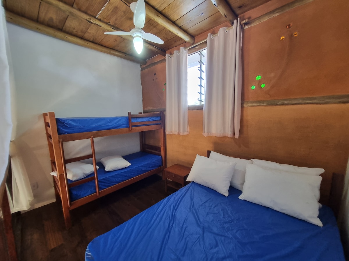 Chalet on Praia do Sleep Paraty Rj, menghadap laut, chalet adalah bilik tidur dengan katil double, termasuk cadar katil dan mandi dan kipas, dapur dengan dapur memasak peti sejuk, periuk, gelas dan sudu garfu. Bilik mandi dengan pancuran mandi air panas, balkoni dengan buaian rajut dan kerusi pantai Untuk ke chalet, yang hanya diterangi oleh bot atau denai. Denai ini berlangsung 1 jam, bot berlepas dari pukul 8 pagi hingga 5:30 petang