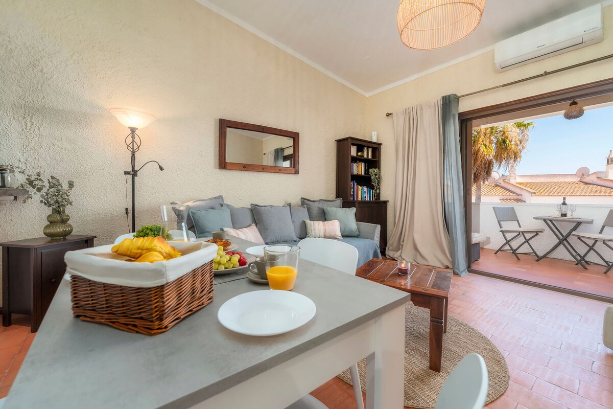 Suite yang menawan ini, luas, selesa dan penuh dengan cahaya semula jadi, sesuai untuk pasangan. Terletak di tingkat satu rumah bandar tradisional yang cantik, ia sangat pusat, hanya 5 minit dari ria, pusat bersejarah, restoran, feri ke pulau-pulau (pantai di Olhão semuanya berada di pulau-pulau) dan stesen kereta api, dan mempunyai pintu masuk persendirian sendiri di lorong pejalan kaki yang indah. Di teres, dengan pemandangan bandar, anda boleh menyediakan dan menikmati makanan, berjemur atau mandi air sejuk.