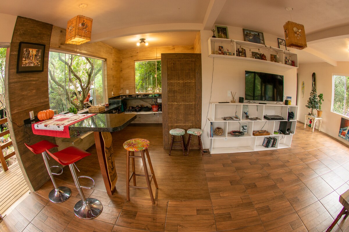 Kabin gaya loteng bersepadu dengan alam semula jadi, untuk berehat dan berhubung semula. Dengan kolam semula jadi dan air yang mengalir. Tempat eksklusif di Gov. Celso Ramos, di kawasan tengah, berhampiran dengan pantai. Ruang persendirian dan ditempah. Ia terletak di hujung jalan pada pendakian bukit (rumah terakhir). Tempatan cerah dengan taman yang indah, pokok buah-buahan dan ruang kontemplatif lain. Ia adalah tempat yang selamat dan mesra keluarga di mana hos tinggal. Di sini haiwan peliharaan anda dialu-alukan. ->Baca ulasan