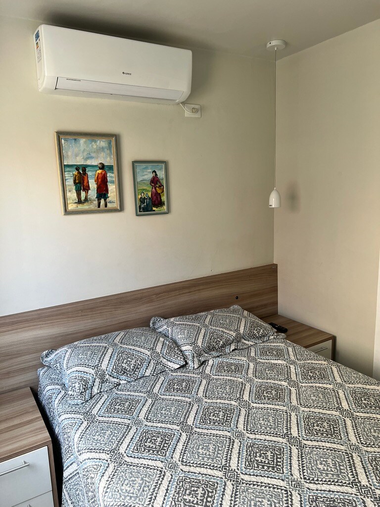 Apartmen 2 bilik tidur adalah en-suite 50m². Di setiap bilik dan wifi, penghawa dingin yang sejuk. Bilik untuk dua persekitaran: Peti sejuk, dapur memasak induksi, penapis air, tv 42. Suite; katil kelamin. Keempat: Katil kelamin dan katil dua tingkat. Tranquilidade untuk kanak-kanak, semua tingkap yang disaring, apartmen tingkat dua tanpa lif. *Ia tidak menawarkan peralatan tempat tidur, hanya bantal yang tersedia kit pantai dengan 4 kerusi. *Lihat jumlah untuk linen dan tuala lebih awal.
