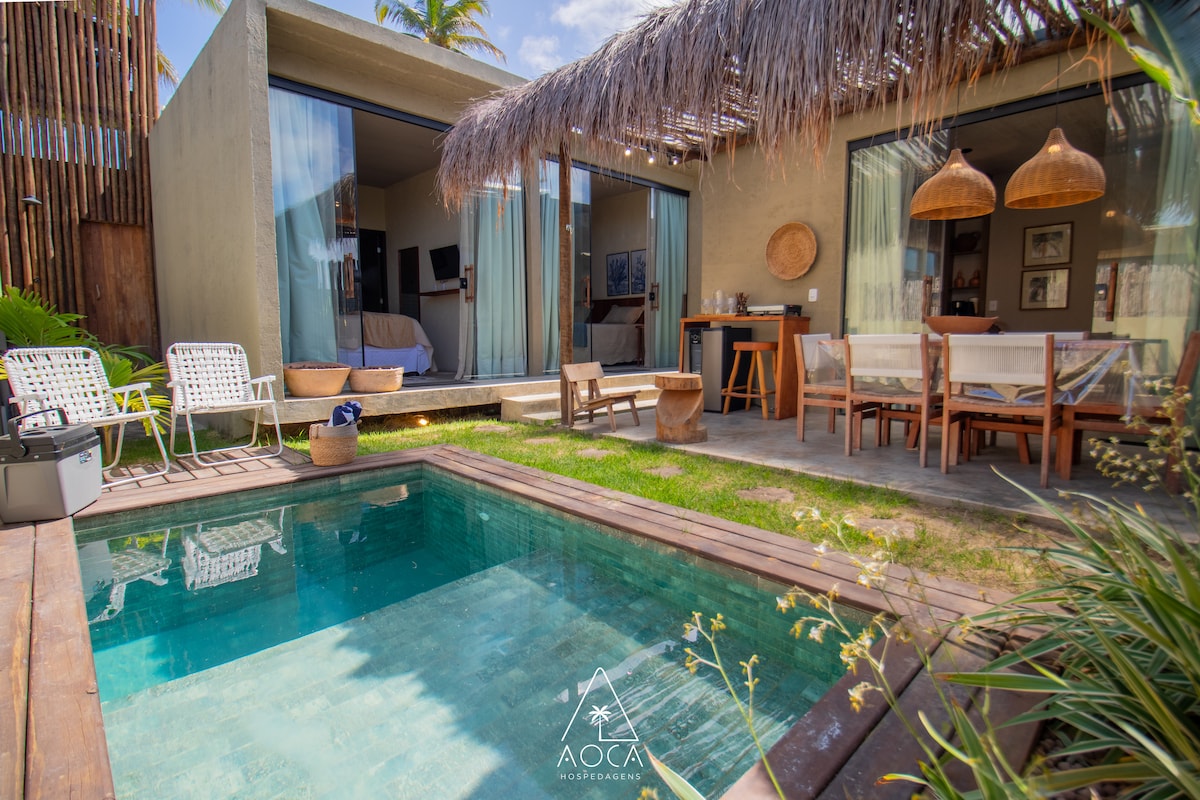 Dapatkan inspirasi daripada keluarga dan rakan di tempat yang bergaya dan penuh reka bentuk ini! Rumah kami dilengkapi dan lengkap untuk mengalu-alukan tetamu anda dan mengubah penginapan anda menjadi pengalaman yang tidak dapat dilupakan! Kolam renang hangat kami mempunyai kawasan cetek yang sesuai untuk kanak-kanak dan pencahayaan malam. 200 meter dari pantai Tatuamunha paradisiacal dan juga sungai, pemandangan indah Peixe Boi - sarapan lazat, dihidangkan setiap hari, - pengemasan rumah setiap hari