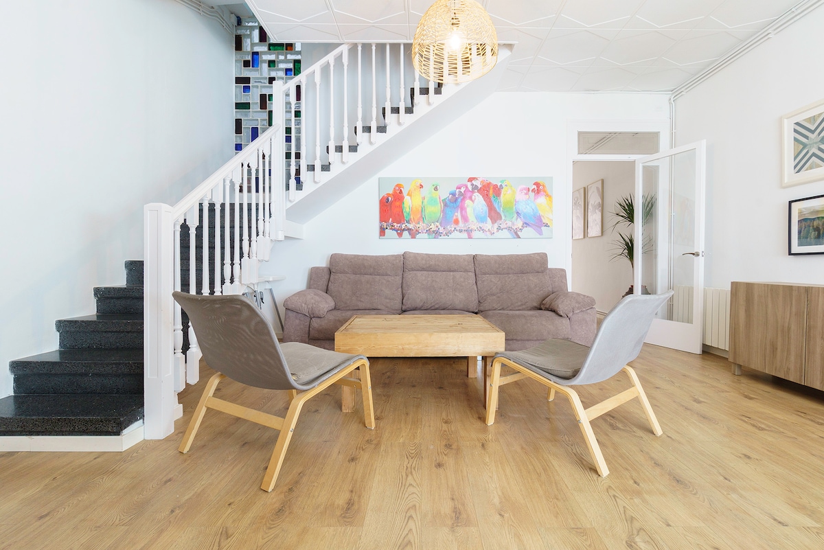 Apartmen ONE BED dua tingkat bergaya bohemia yang cantik ini berkeluasan 90m2, menawarkan pemandangan menakjubkan ke seluruh bandar dari teres besar yang dipenuhi tumbuhan. Jarak berjalan kaki dari Las Ramblas. Terdapat bilik tidur dengan katil saiz Queen di tingkat bawah di sebelah balkoni panjang dan ruang tamu terbuka di tingkat atas di sebelah teres. Terdapat TV pintar, wifi percuma dan mesin basuh dan pengering. (sila ambil perhatian: ia berada di tingkat 6 dan TIDAK ada lif). Cukai pelancong (€6.25 seorang/semalam) TERMASUK dalam harga semalam.