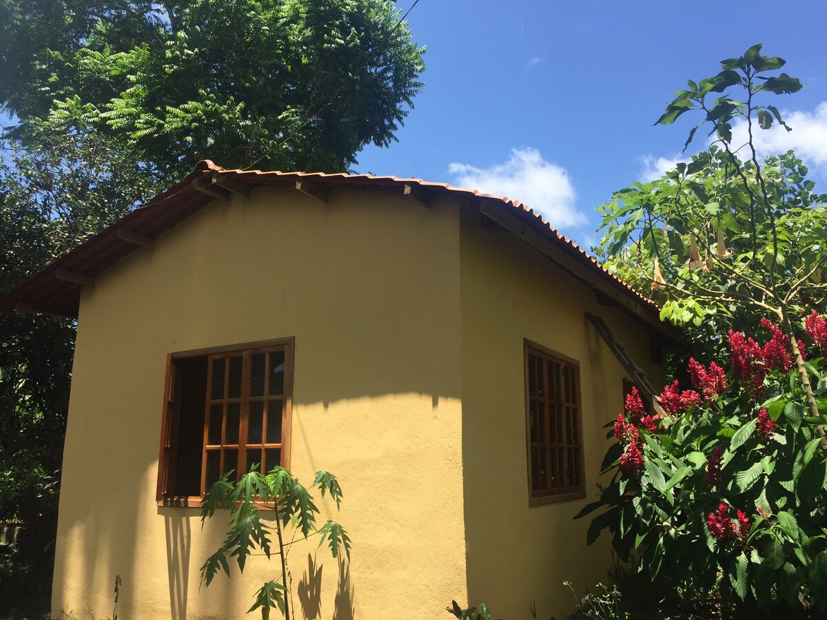 Little country house surrounded of Lemon, avocado and oranges trees!! If you are looking for a peaceful place surrounded of nature, our little yellow house is for you! It’s a modest place but we will make sure you have everything you need to feel like home. The kitchen has got all basic utensils to cook, fridge and stove, shared with a small dining room. The bedroom’s got a double bed and sofa-bed. Easily can fit perfect two couples or a couple with two children.