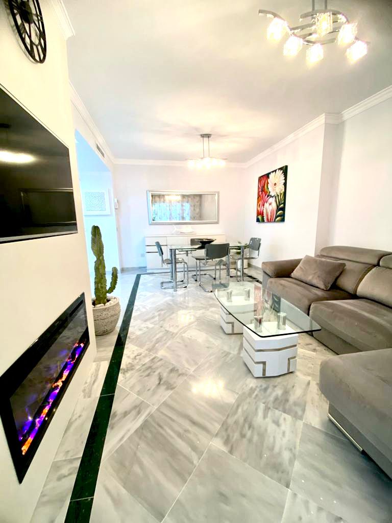 PUERTO BANUS BEACH SIDE in CENTER/ ALCAZABA New renovated luxury 2BR Apart, located in well known La Alcazaba, one of the most prestigious development surrounded by the award winning gardens & 4 glorious interconnected pools just in the heart of Puerto Banus, within walking distance to the beach and PuertoBanus center where you will find many choices of restaurants, bars, cafes, shops and all amenities one could need. The property is gated with security 24 hours.
