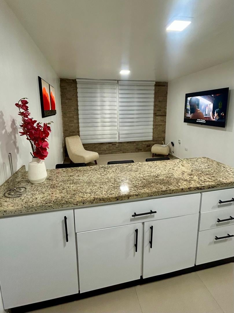 Disfruta en este espacio único, tranquilo y céntrico en donde podrás vivir días maravillosos, te brindamos cómoda cama con lencería, almohadas de primera calidad, agua caliente, wifi, cocina totalmente equipada, cafetera, baño espacioso, piscina y la mejor ubicación a tan solo 2 minutos de la playa, farmatodo, bodegones, farmacias, supermercados y restaurantes.