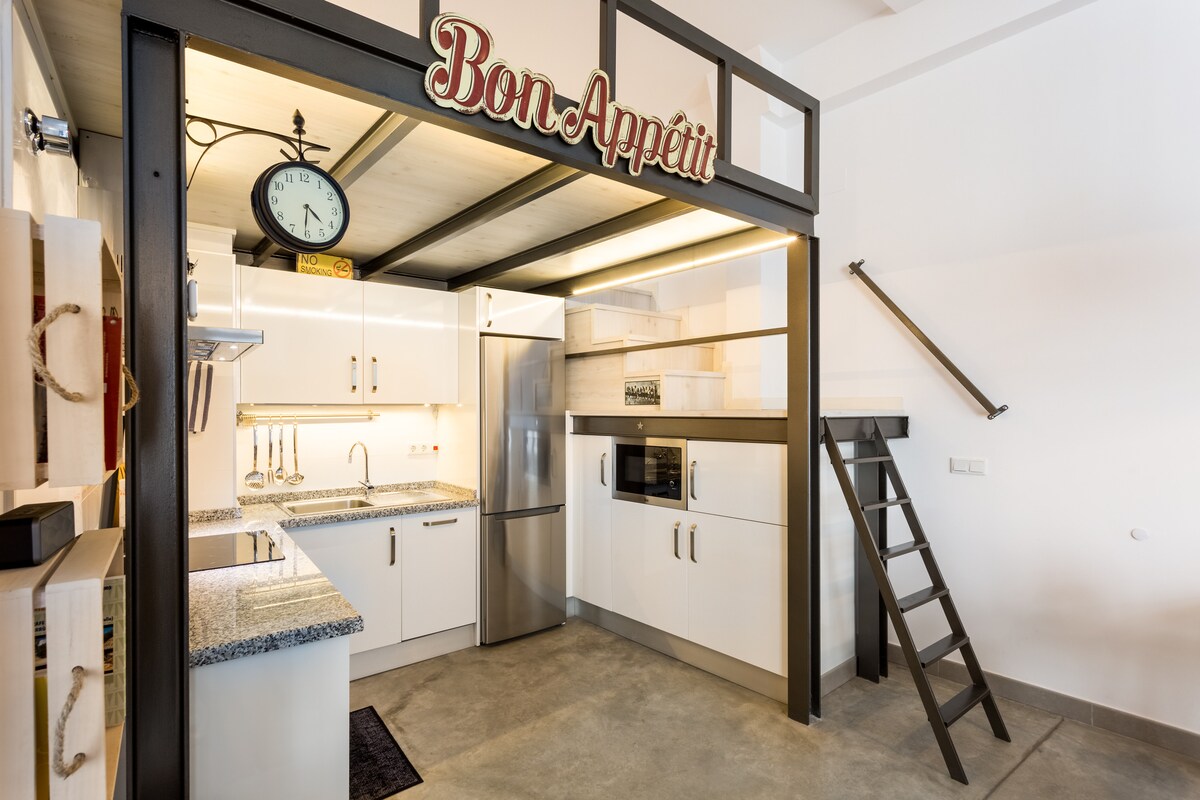 Loteng 55 kaki persegi yang cerah dan moden di tengah-tengah daerah pelabuhan bersejarah Arenal, 3 minit ke laga lembu dan bersebelahan dengan laluan sungai. Reka bentuk perindustrian yang selesa untuk berasa selesa. Bilik tinggi, tingkap besar. Tiada bunyi trafik / pub. Sesuai untuk berehat selepas lawatan bandar atau hari bekerja. Hanya 3-10 minit berjalan kaki ke tarikan utama, kafe, restoran, tapas, kedai, hiburan malam Dapur lengkap, 2 bilik mandi. 2 katil kelamin, 1 katil sofa. Pintu masuk terus tanpa tangga. Baru diubahsuai.