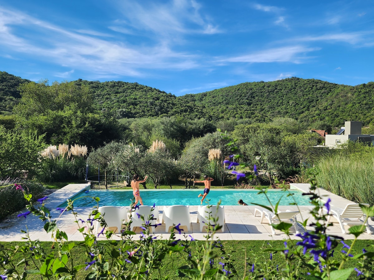Nikmati persekitaran semula jadi yang menawan di penginapan pereka ini... untuk dikongsi dan dinikmati, menghadap Los Gigantes, di sebelah sungai Las Jarillas dan sepuluh minit dari spa Copina dan San Antonio de Arredondo, ia adalah titik penginapan terdekat dan paling selesa untuk pergi ke Taman Negara Quebrada del Condorito. Jika anda tidak mempunyai kenderaan, hubungi kami untuk menawarkan perkhidmatan ulang-alik. Kami juga menawarkan aktiviti seperti mendaki ke litar air terjun yang berbeza.